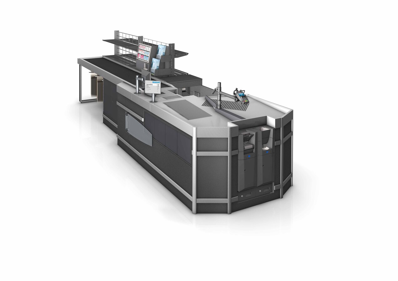 Stůl pokladny je modulárně použitelný, což umožňuje realizaci individuálních objednávek zákazníků. U pokladního pásu jsou atraktivně uspořádány držáky cigaret nebo regály s cukrovinkami. Přitom lze vedle možností prezentace použít i možnosti výdeje hodnotného artiklu, jako jsou např. žiletky nebo telefonní karty. Také pro chlazené produkty (+4 až +8 °C), stejně jako pro ohřívané zboží (s vnitřní teplotou zboží +65 až 70 °C) je u poklady možnost velmi lákavého vystavení. Pro zcela konzistentní uspořádání lze prostor před pokladnou využít ke skladování nákupních košíků, včetně multimediálního připojení pro reklamní účely. Odpovídající koncepce osvětlení vytváří příjemnou atmosféru a zároveň slouží jako praktický naváděcí systém pro zákazníky.