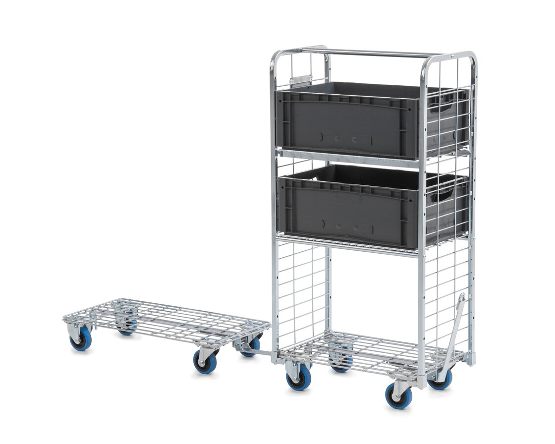 Transportní podvozek a vychystávací vozík v jednom. Ideální prostředek pro tok materiálu ve vláčku/ milkrun.