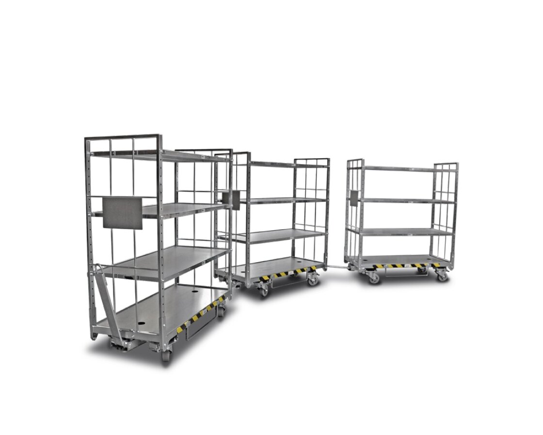 Policové vozíky jsou používány především na rozvoz materiálu ze skladu na jednotlivé pracoviště v rámci výroby, nebo na tok mezi jednotlivými pracovišti. Přehledné uložení na více ložných plochách, možnost značení jednotlivých pozic, materiál na jednom vozíku pro více pracovišť - to vše jsou výhody vozíků Wanzl. Nabízíme varianty s řízenou nápravou i bez řízené nápravy pro milkrun.