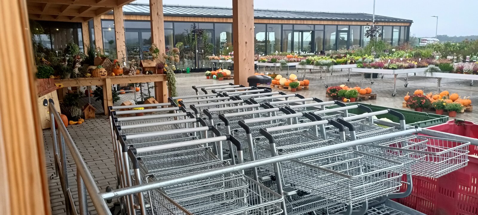 Po úvodní konzultaci Wanzl představil návrh vhodného vybavení včetně detailních plánů pro jednotlivé regálové segmenty. Vzhledem k sortimentu byly vybrány regály Vitable a wire tech 100, které firma Wanzl dodala už za měsíc. Pro komfortní nákup byly doporučeny vozíky MUC 300, které jsou ideální pro zahradní centra, a pro menší nákupy oblíbené košíky GT26 eco se zeleným madlem. Autentickou venkovskou atmosféru prodejní plochy umocnily proutěné koše na stojanech a prodejní stoly YourTable ® T.01, kde se prezentuje akční, ale i sezónní zboží. Po finální dodávce byly na dřevěný nábytek instalovány držáky cenových lišt.