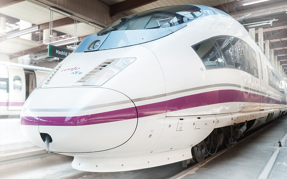 AVE-højhastighedstogene (Alto Velocidad Española) drøner på ca. 3.000 kilometer lange strækninger tværs gennem Spanien med en hastighed på op til 330 km/t. Med en rejsetid på 2,5 timer bliver turen fra Madrid til Barcelona, der ligger mere end 600 kilometer væk, meget overkommelig. Madrids banegård, Puerta de Atocha, er omdrejningspunktet i AVE-systemet og det perfekte udgangspunkt for et