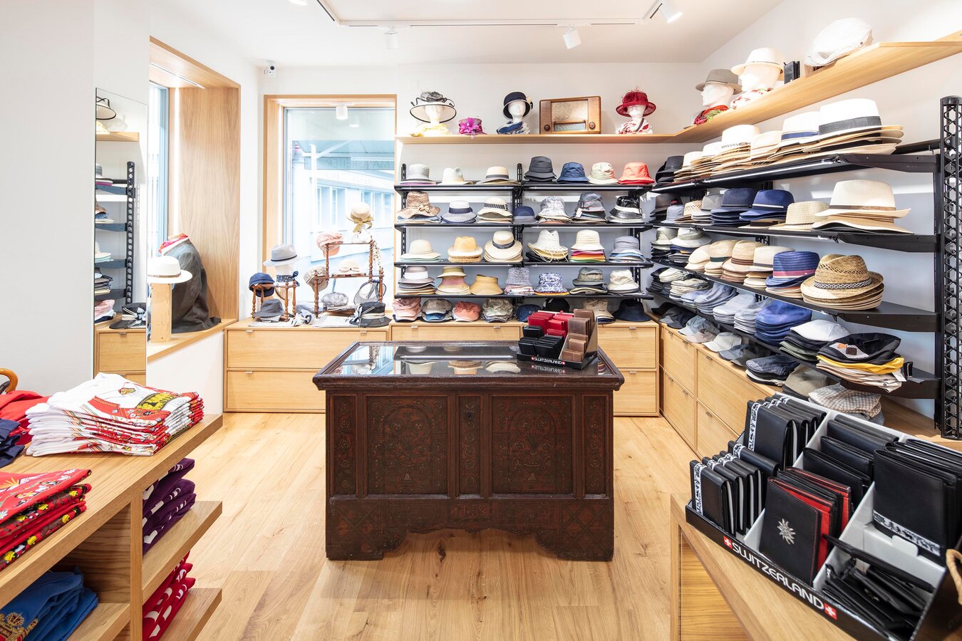 Det første, man lægger mærke til i den traditionelle butik beliggende midt i den seværdige lokalitet Appenzell, er den egnstypiske stil. Kurvede eller knækkede gavle