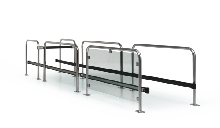 Med denne meget stabile konstruktion af rustfrit stål kan bagagetransportvogne anvendes indendørs eller udendørs, hvor pladsen er trang. Anlæggene tilpasses i længden efter kundens ønsker og kan leveres i en eller flere rækker. Vognene styres til siden.