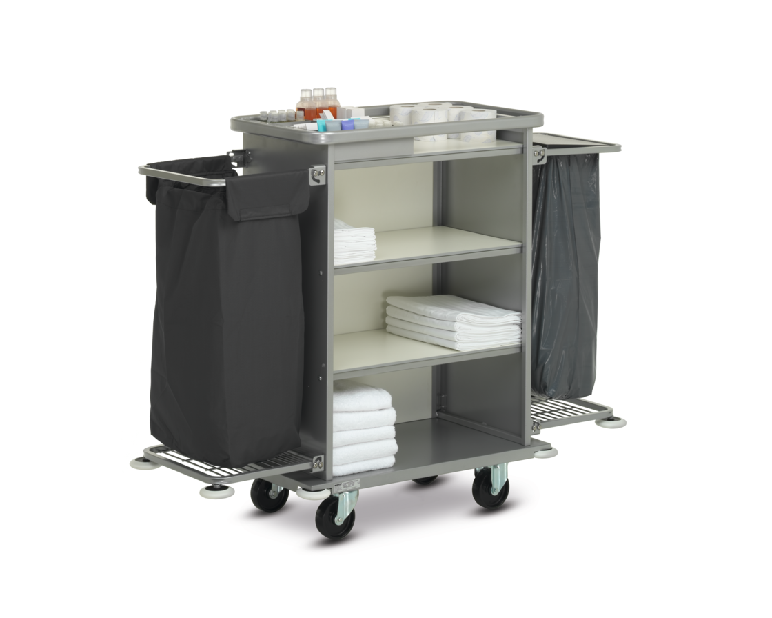 Housekeeping-vognen Basic med sit praktiske udstyr i den sædvanlige Wanzl-kvalitet passer også til et lavere budget.
