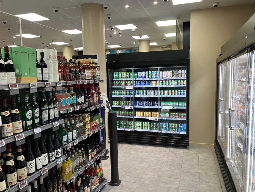 Vi har også leveret en kombineret ind- og udgangsløsning til et afgrænset område i butikken, hvor kunderne kan købe alkohol – når de har registreret sig med MitID, for at bekræfte deres alder. Samtidig har vi leveret al basisinventar til butikken, så den står skarpt til åbningen.