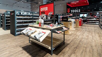 Vores designafdeling har mange års erfaring med butiksindretning og ved, hvad der skal til for at skabe indbydende, fleksible og funktionelle rum, der understøtter butikkens profil. Hvad enten det er en helt ny butik eller et afgrænset område som her. Læs mere om, hvordan vi arbejder med design.
