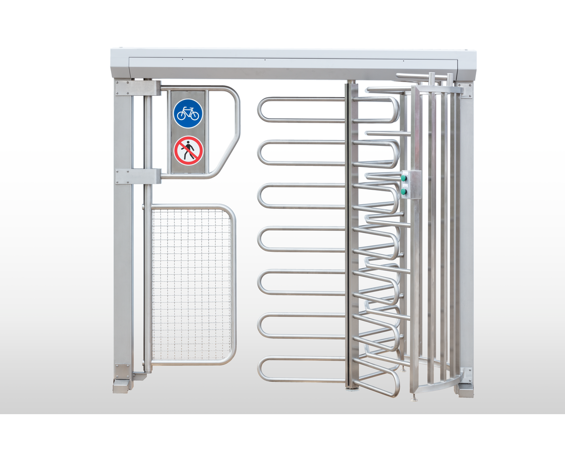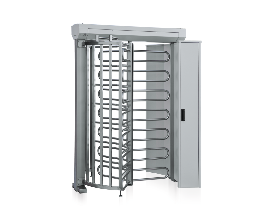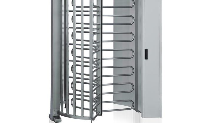 Drehkreuz mit Sperrbügeln oder -holmen, 90° oder 120°. Wartungsfreier, elektromotorischer Antrieb. Ein- und Zweirichtungsbetrieb möglich. Einfache Montage.