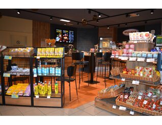 Wohlüberlegte Beleuchtung und gemütliche Sitzgelegenheiten runden den Genuss des leckeren Kaffees ab. Wer dazu gern die Zeitung liest, bedient sich aus dem multifunktionalen Trennelement, das auch der Warenpräsentation dient.