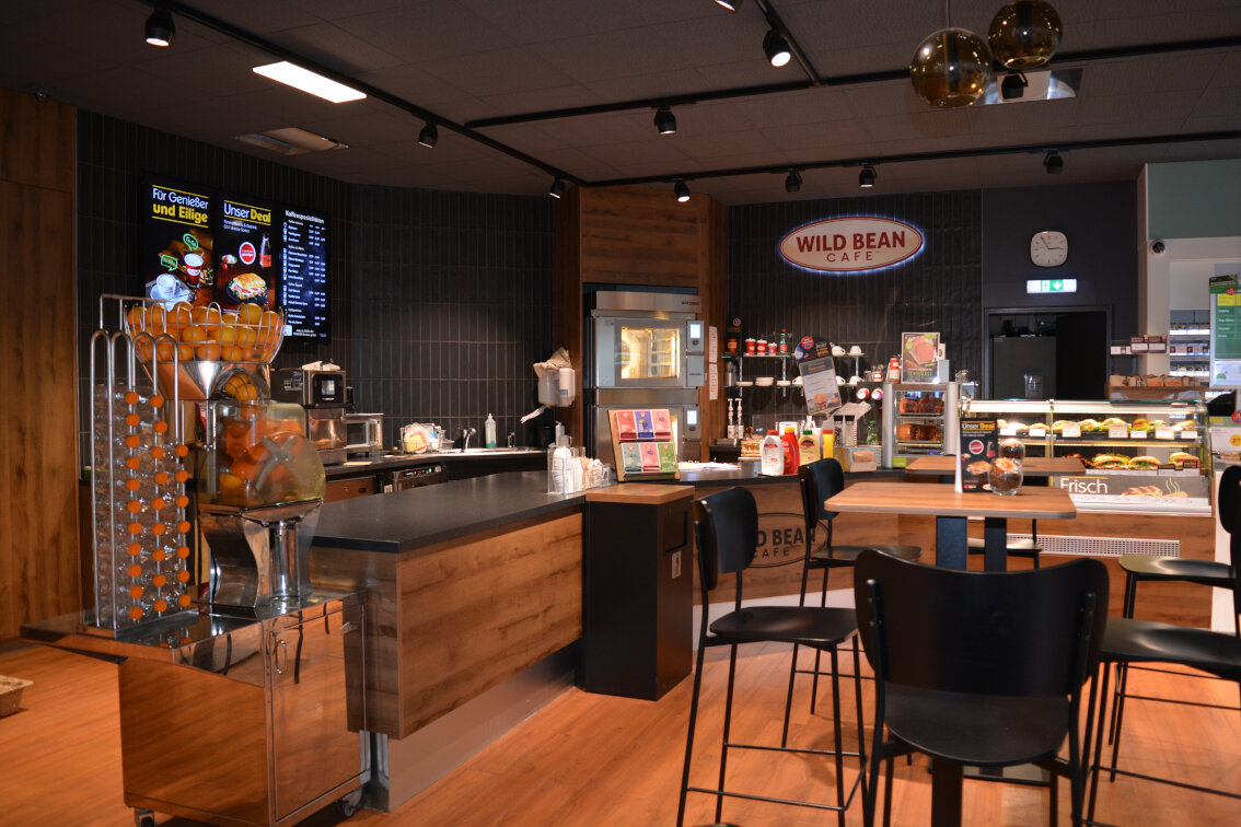 Die Partnerschaft von bp und Wanzl besteht seit 2011 - Wir sind stolz, auch den neuen Look der Wild Bean Cafés mitzugestalten und umzusetzen. Im Charme eines gemütlichen Wiener Kaffeehauses mit Atmosphäre in warmen Holz- und Naturtönen erstrahlt die Tankstelle Wien Triesterstraße 153 seit Herbst 2022.