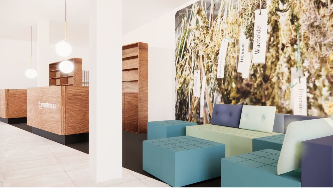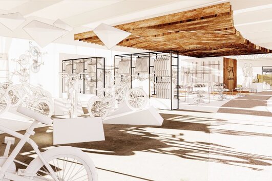 Flexibel, offen erlebnisreich anders - oberste Premisse ist ein bunter Marktpltz voller Erlebnisse ohne die üblichen Schaufenster, Shops und Mall verschmelzen ineinander. Mit der Platzierung von Möbeln und Regalen werden im open Shop Konzept unterschiedliche Bereiche definiert. Ein Spiel mit Höhe und Materialität differenziert Zonen und erlaubt Akzentuierung der Produkte. Die Kassen sind zentraler Bestandteil der Gestaltung - die damit gesetzten Fokuspoints dienen als emotionales Kommunikationselement.