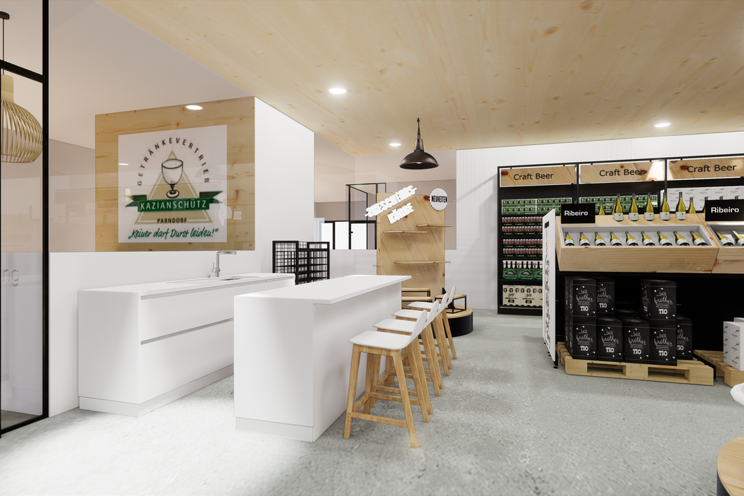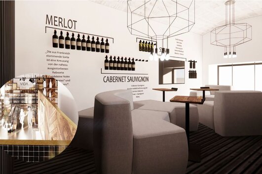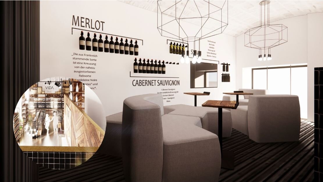 Das multifunktionale Konzept vereint Weinverkauf und Verkostungsbereich, einen begehbaren Kühlschrank, Degustation und Veranstaltungsmöglichkeit