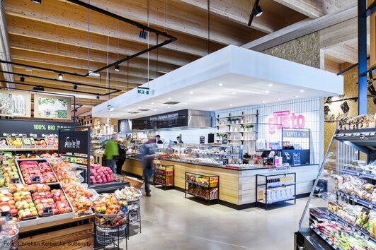 Rund 1.500 Partner aus der Region versorgen den Vermittler der regionalen Genusskultur und somit auch die Kundinnen und Kunden mit einer riesigen Produktvielfalt. Der Ladenbau in frischem, natürlichem Look setzt das breite Sortiment gekonnt in Szene.