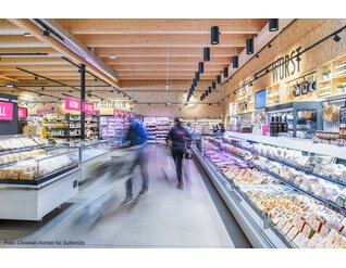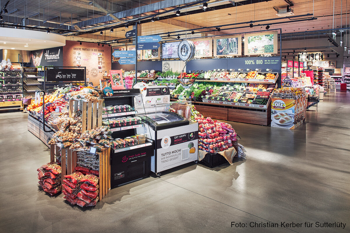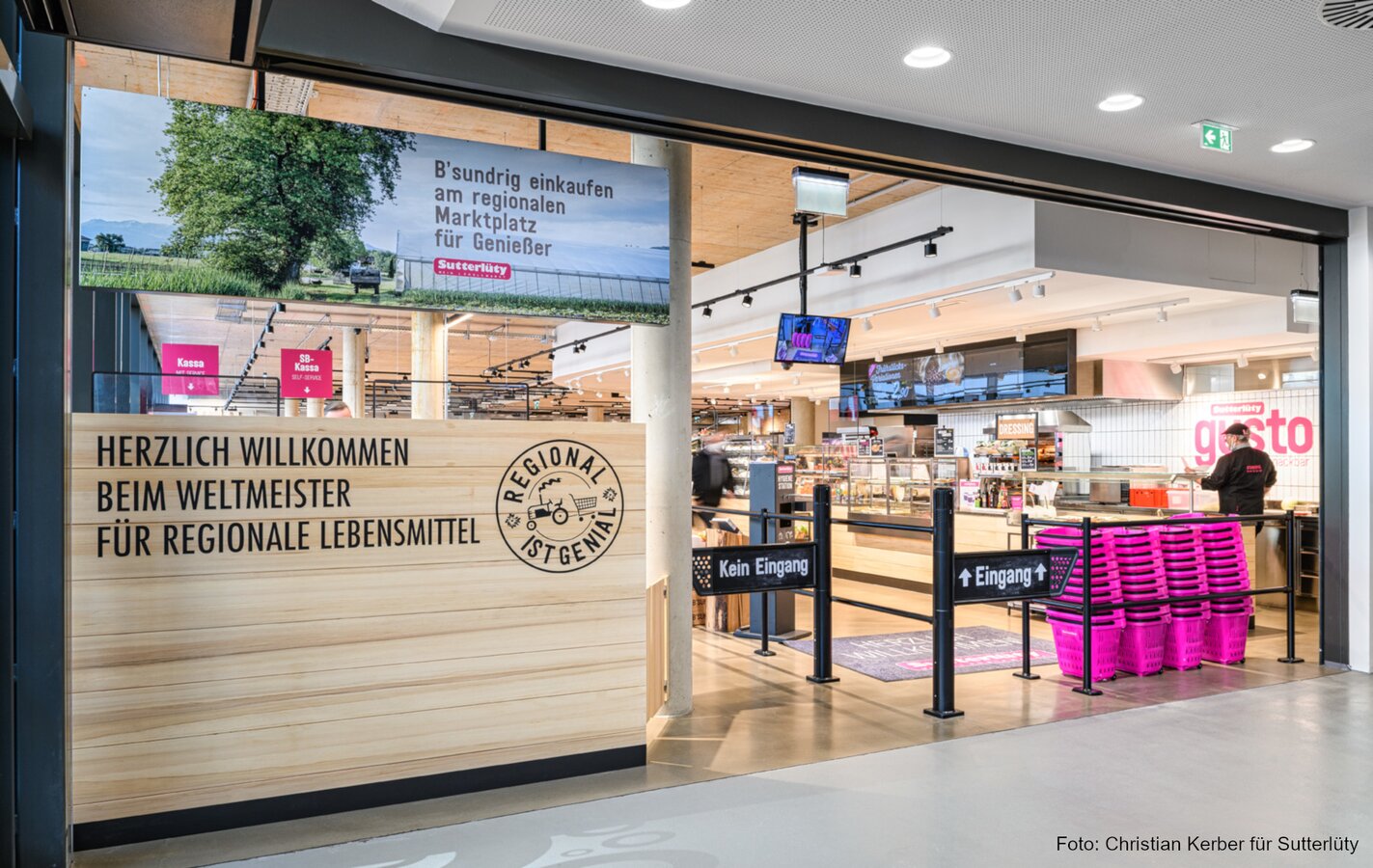 Schon seit der Gründung 1952 ist die Regionalität das Herzstück von Sutterlüty. Abseits der Produkte legt die Vorarlberger Handelskette auch im Ladenbau viel Wert darauf: Wo immer möglich, werden lokale Gewerke und Materialien eingesetzt. Wir sind stolz, dass unser Ladenbau den strengen Nachhaltigkeitsprüfungen standhält.