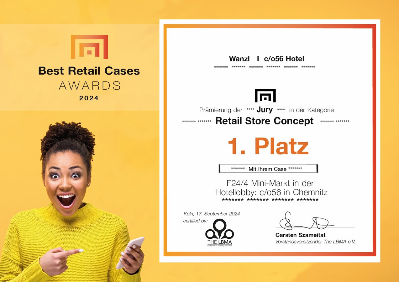 Im Rahmen der Verleihung des Best Retail Awards am 17. September 2024 in Köln konnte sich Wanzl Hotel Service in der Kategorie "Store Concept" mit der Mini-Market-Lösung in der Lobby des Hotels c/o56 den Sieg sichern. Das von Wanzl entwickelte Konzept des Selbstbedienungs-Shops „C/onsum56" punktete auf ganzer Linie: Das flexible und autonome Einkaufskonzept ermöglicht sowohl Hotelgästen als auch Anwohnern rund um die Uhr den Zugang zu einem vielfältigen Sortiment. Die Bezahlung erfolgt entweder via digitalem Self-Checkout oder an der Rezeption. Bargeld oder eine spezielle App sind somit nicht erforderlich. Damit hat der Hotel-Shop nicht nur die 15-köpfige Jury, sondern auch die 1.950 Anwender überzeugt. Für Markus Spengler, Senior Vice President Sales Hotel & Material Handling, stellt diese Auszeichnung einen besonderen Wert dar: "Beim Best Retail Award küren Fachjury sowie Anwender unabhängig voneinander die besten Anwendungsbeispiele. Daher freut es uns umso mehr, dass unsere Mini-Market-Lösung für das c/o56 Hotel auf allen Seiten begeisterte." Um den Best Retail Award zu gewinnen, müssen Bewerber nicht nur einen innovativen Ansatz aufweisen, sondern auch markante Erfolge vorweisen können.