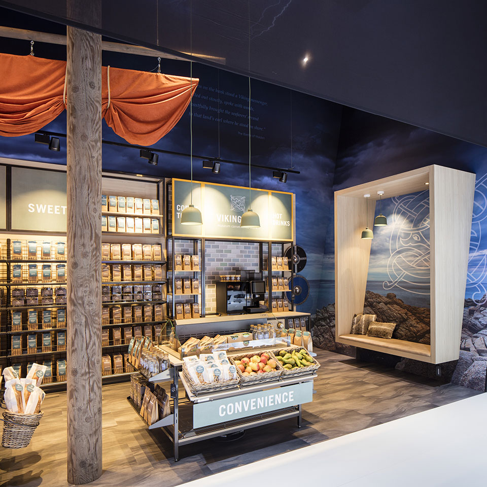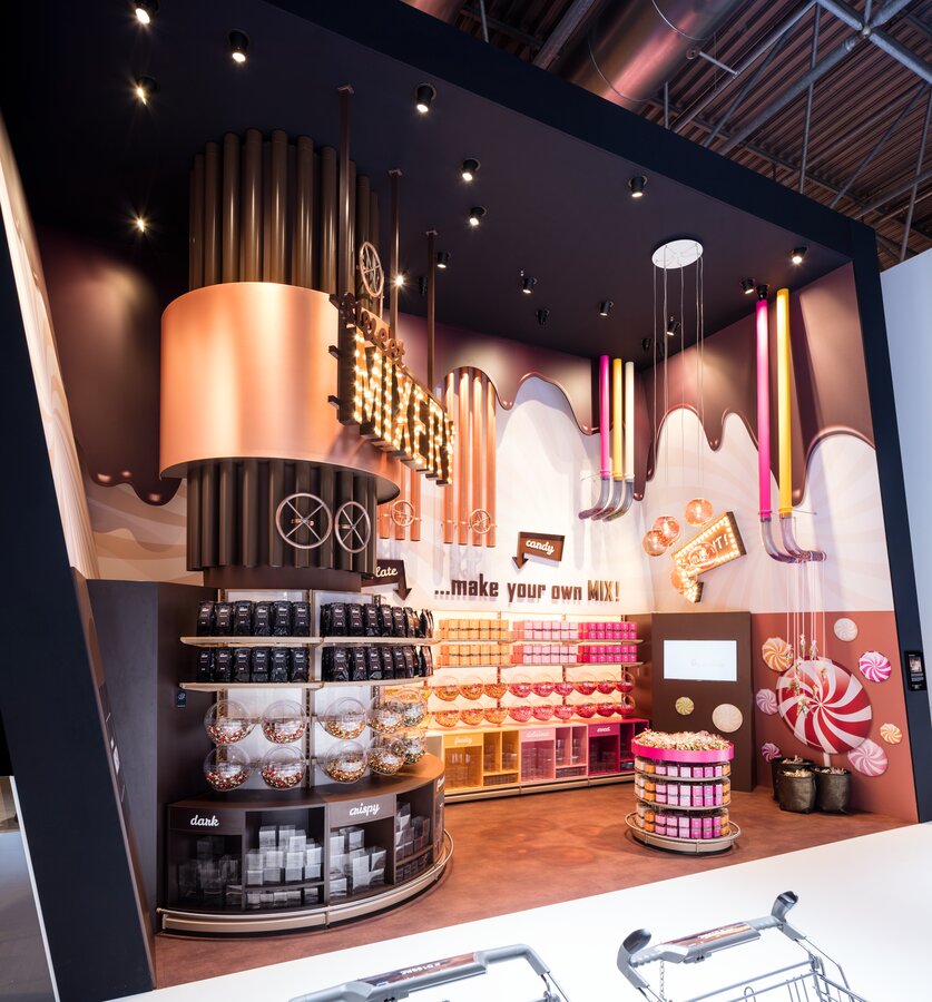Die emotionalen Ladenbauboxen von Wanzl zogen Messebesucher aus dem In- und Ausland an. Hier spielten die Leipheimer die Stärken stationärer Märkte bei Ladeninszenierung und Produktpräsentation voll aus. Ein Wikingerschiff diente als außergewöhnliche Kulisse für die exklusiven Ladenbaulösungen, die Produkte immer in den Vordergrund rücken. Als schicke Neuheit feierte das Design-Regal pure tech mit seiner schlanken, fast transparenten Säule bei gleichzeitig hoher Tragkraft seine Messepremiere. Kombiniert mit den Systemen wire tech und vino tech inszenierte sich der Shop für Craft Beer und Wein als attraktiver Umsatzträger im Factory-Style. Die variablen Präsentationsmodule YourTable, YourTable Cool und BakeOff 3.0 präsentierten ertragsstarke Genussinseln und margenstarke Frischeprodukte für Cross-Selling und Convenience. Was einen Candyshop einmalig macht, wie Workwear und Design miteinander funktionieren, welche Impulse die Denkfabrik mit ihren 3D-Simulationswelten lieferte – auch das gab es live nur bei Wanzl zu erleben.