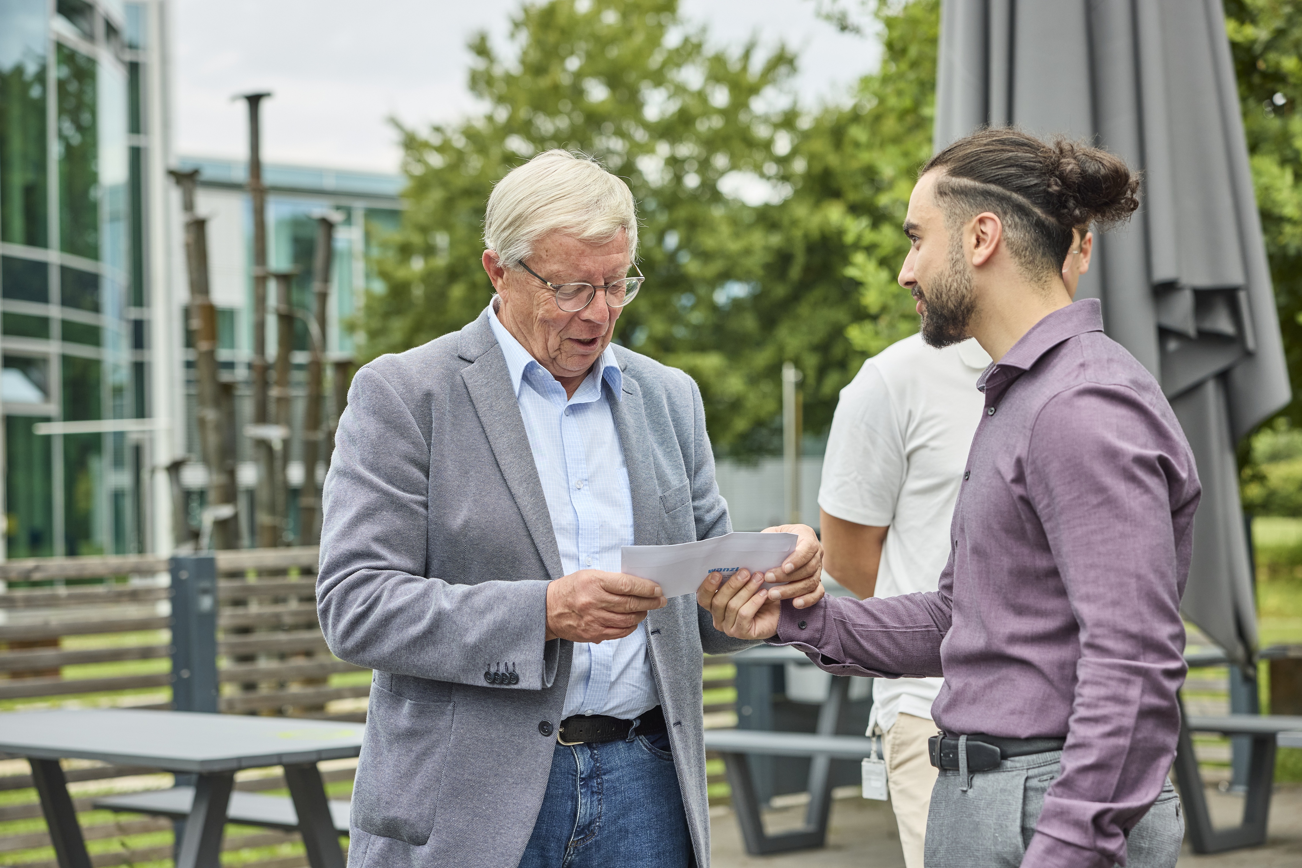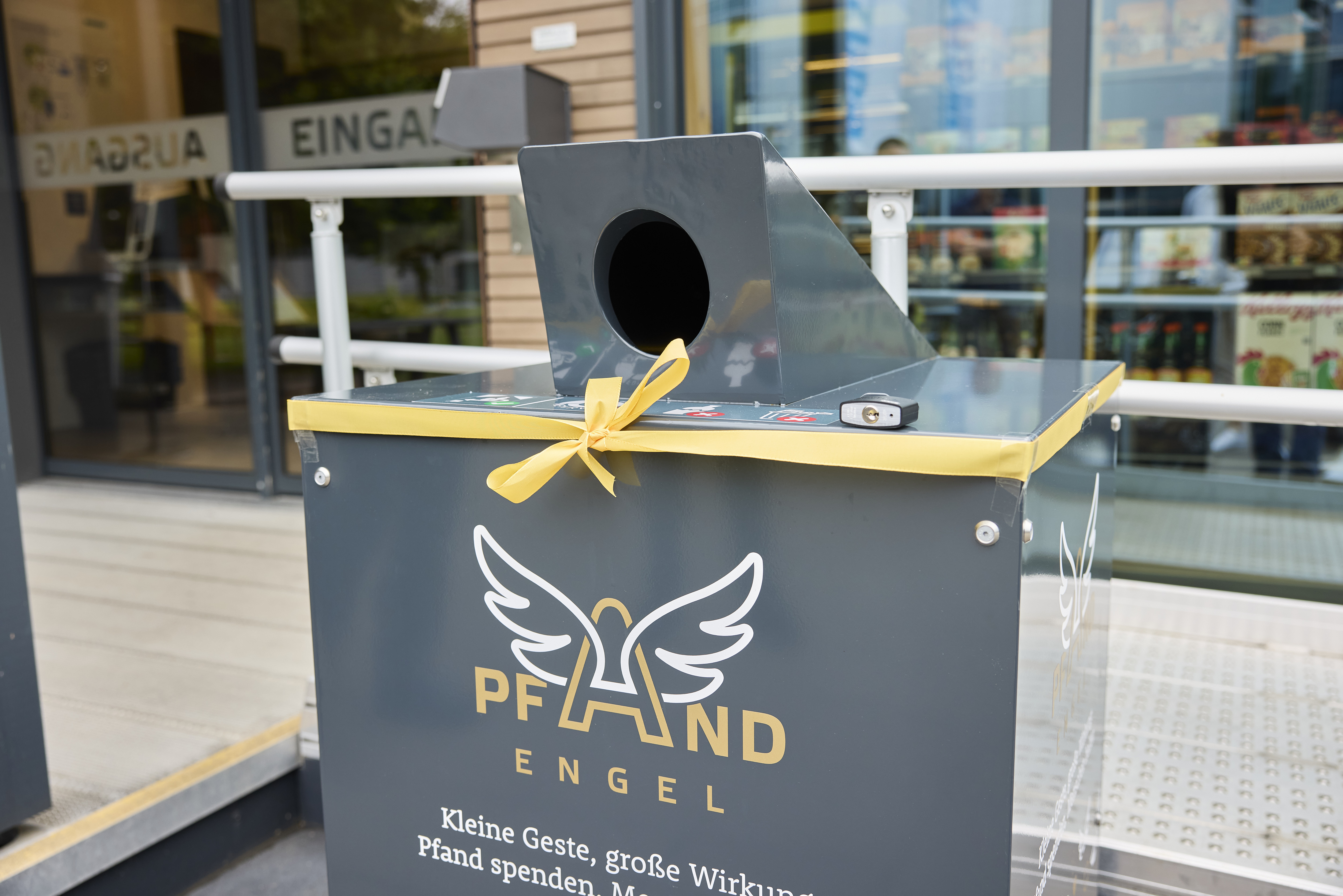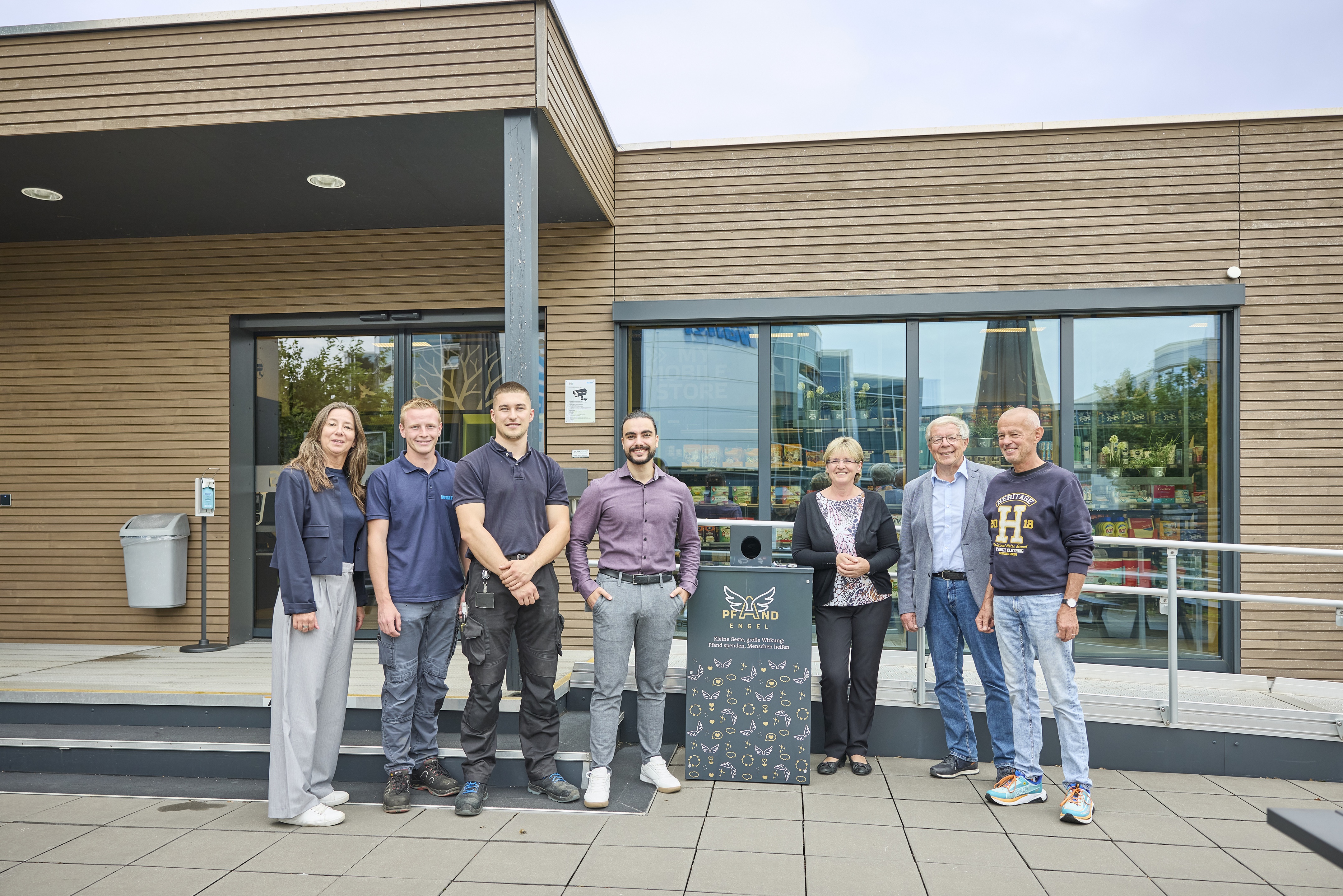 Der Pfandengel steht direkt neben dem firmeneigenen Mobile Store, in dem Beschäftigte Lebensmittel, Snacks und Produkte des täglichen Bedarfs einkaufen können und der zudem als Pausenbereich dient. In einer kleinen Eröffnungsveranstaltung erhielten Vertreter der Tafel Günzburg/Burgau vor Kurzem den Schlüssel zum Sammelbehälter. Dadurch ist eine effiziente Nutzung gewährleistet. Bei Sonderfahrten der Tafel zum Wertstoffhof können auf dem Rückweg die gespendeten Pfandflaschen und -dosen direkt bei Wanzl abgeholt werden. Ins Leben gerufen wurde das Projekt von Sinan Erdagi, Sachbearbeiter Sustainability bei Wanzl: „Das Konzept habe ich im Laufe meiner Ausbildung bei Wanzl entwickelt. Ich wollte eine Lösung schaffen, die nachhaltiges Handeln einfach in den Arbeitsalltag integriert.“ Im Rahmen der Eröffnung überreichte Sinan Erdagi zudem eine erste Spende in Höhe von 100 Euro an die Tafel. Bereits während der Entwicklungsphase sammelte das Projektteam Pfandflaschen für den guten Zweck. Johann Klement, Vorsitzender der Tafel Günzburg/Burgau, freut sich über die Unterstützung: „Der Pfandengel ist eine willkommene Hilfe und ein schönes Beispiel für den regionalen Zusammenhalt. Wir sind dankbar für jede Spende und besonders für solche kreativen Projekte.“