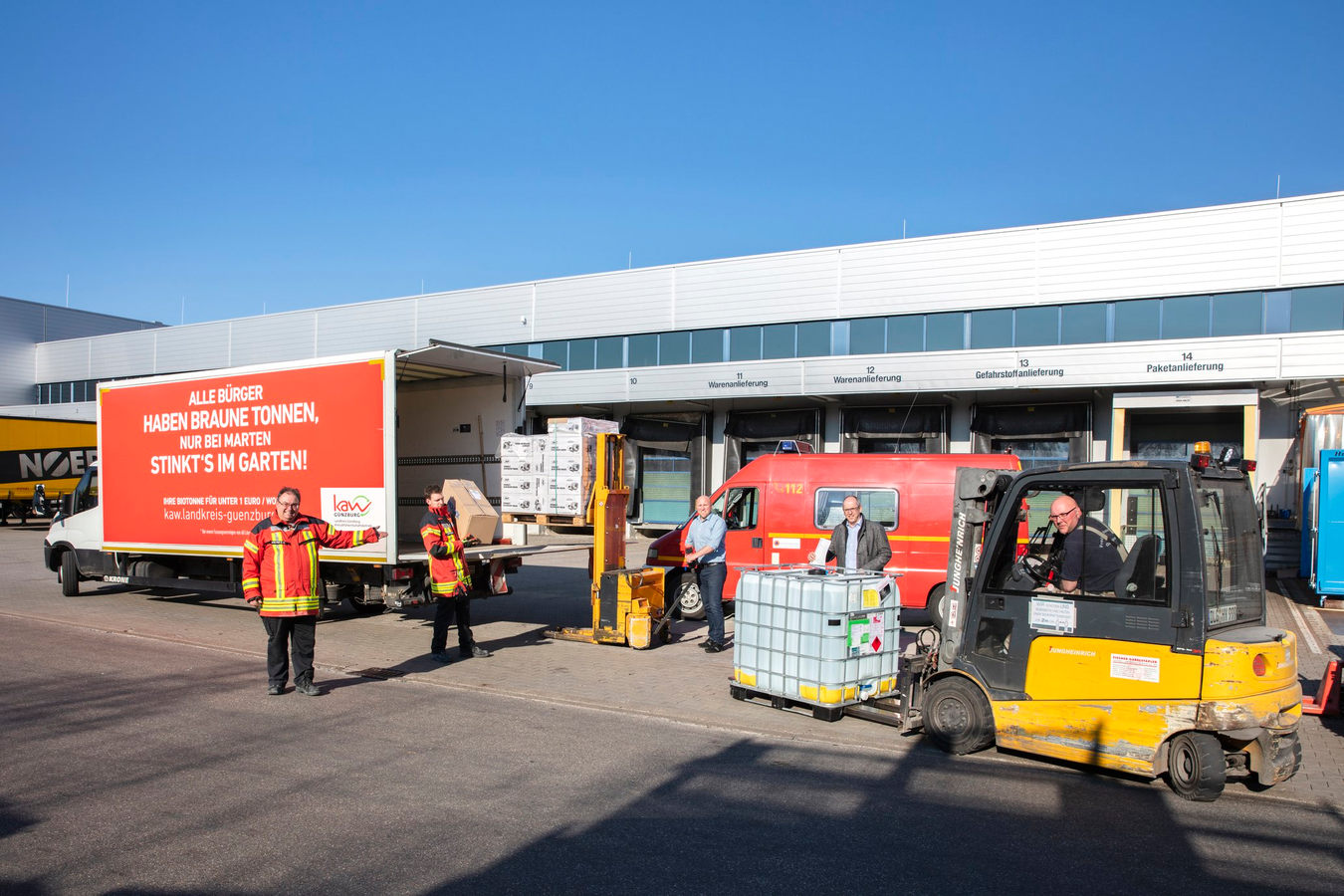 Neben Desinfektionsmittel und Atemschutzmasken hilft Wanzl der Katastrophenschutzbehörde zudem mit einem einzelnen Mülleimer aus. Hintergrund: Das Testzentrum „Coronavirus – COVID-19“ auf dem Gelände des Kreisabfallwirtschaftsbetriebs in Leipheim wird ab sofort betrieben. Allerdings konnte das Landratsamt zunächst keinen Abfallbehälter mit Fußpedal zum kontaktlosen, hygienischen Öffnen des Deckels auftreiben. Erst bei Wanzl fand man ein passendes Produkt. Der Mülleimer ist Bestandteil des neuen Produkt- und Serviceportfolios des Unternehmens zum Schutz für Mitarbeiter und Kunden des Lebensmitteleinzelhandels.
