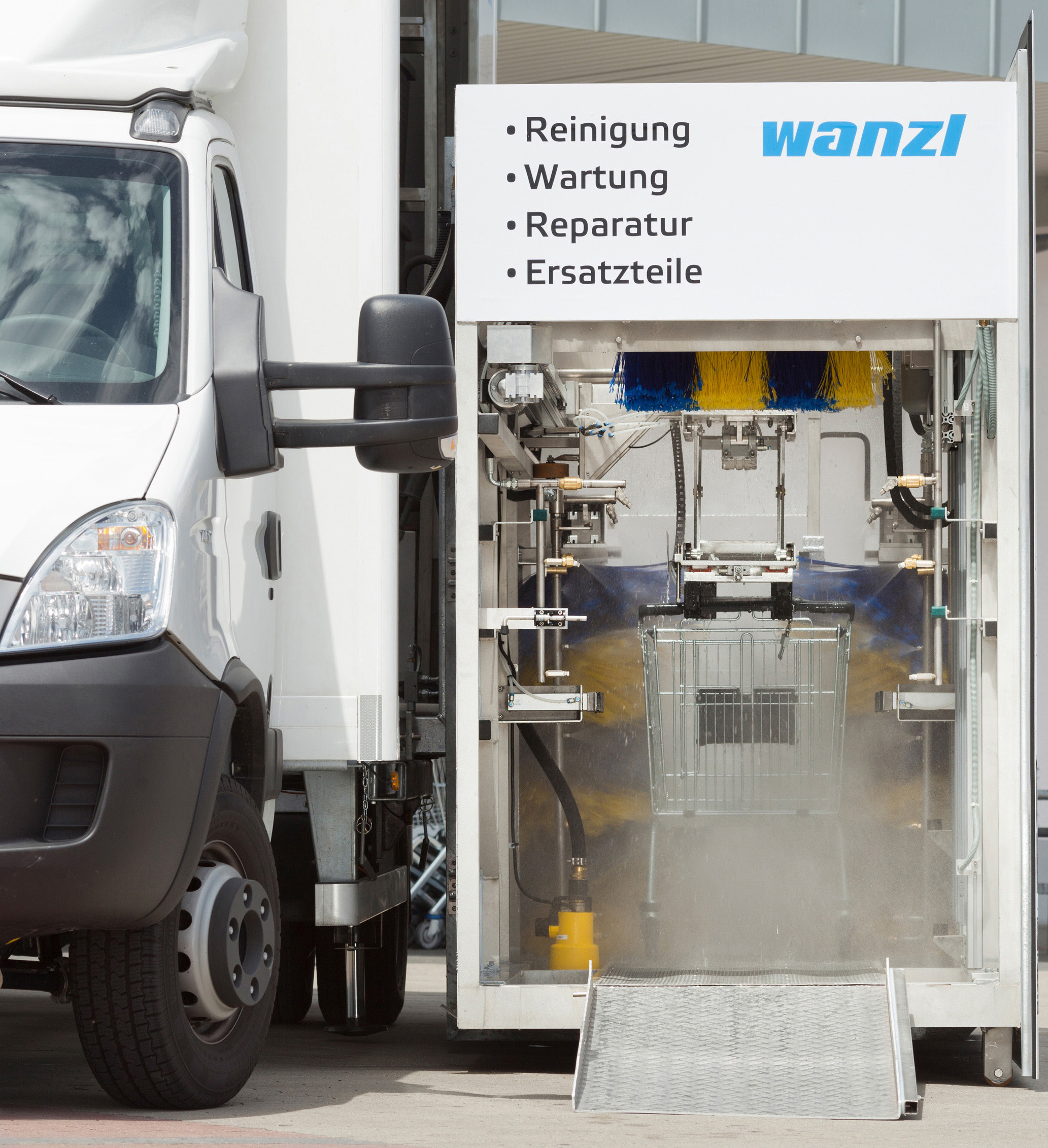 Die Dienstleistung Trolley Star von Wanzl bietet Reinigung, Wartung, Reparatur und Ersatzteilservice für Einkaufswagen als "All-inclusive-Paket". Ein Spezialmobil rollt bis direkt vor den Markt, und die Show mit dem einzigartigen Werbeeffekt kann beginnen. Zuerst fährt das Fahrzeug seine integrierte Waschstraße aus. Dann öffnen sich die Luken, an Bord befinden sich alle für den Einkaufswagenservice notwendigen Prüfmittel und Werkzeuge sowie Original-Wanzl-Ersatzteile, passgenau abgestimmt auf jeden speziellen Einkaufswagen. Denn die Original-Ersatzteile von Wanzl schützen den Handel vor etwaigen Haftungsansprüchen bei produktbedingten Unfällen.