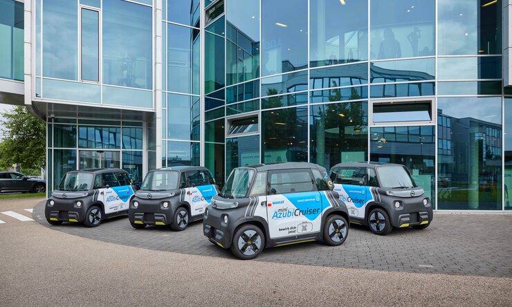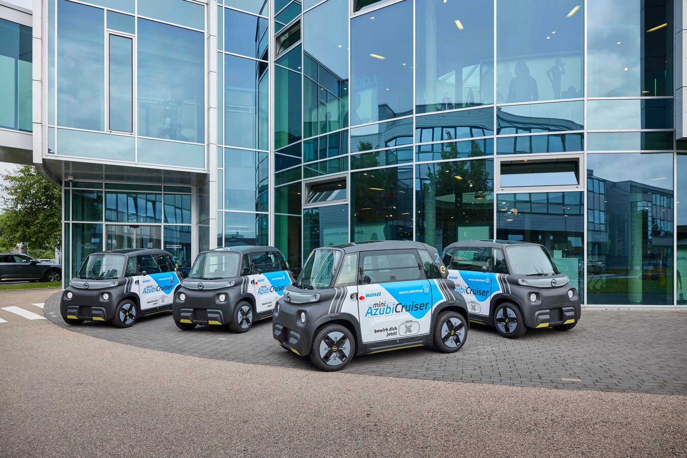 Wanzl hat seine Fahrzeugflotte für Auszubildende noch einmal erweitert. Zu den zwei vollelektrischen MG4 Electric, von denen jeweils einer den Auszubildenden in Leipheim und Kirchheim zur Verfügung stehen, gesellen sich nun vier neue, gebrandete Opel Rocks-e.