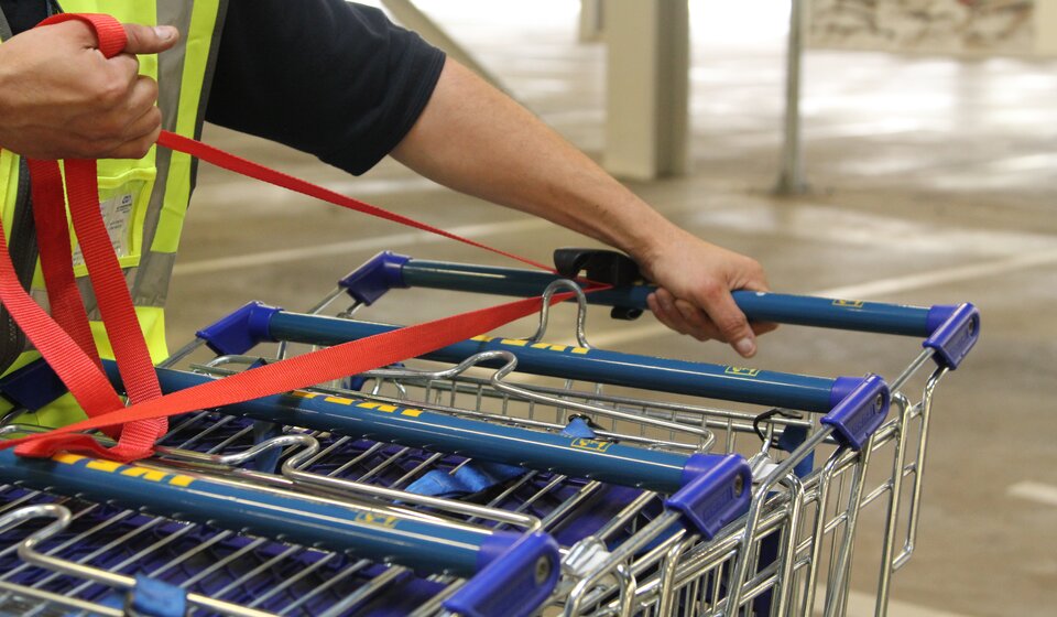 The modern day lasso! Trolleys can run but they can’t hide... our trolley straps keep trolleys securely fastened together, giving users more control over their movement in volume.