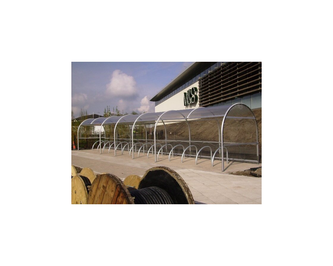 The Eco Cycle Shelter is produced using high-grade tempered aluminium. The eco cycle shelters come in an anodised finish for longevity, to withstand the elements without corrosion or rusting over time. This unit can be powdercoated to any RAL colour of your choice.