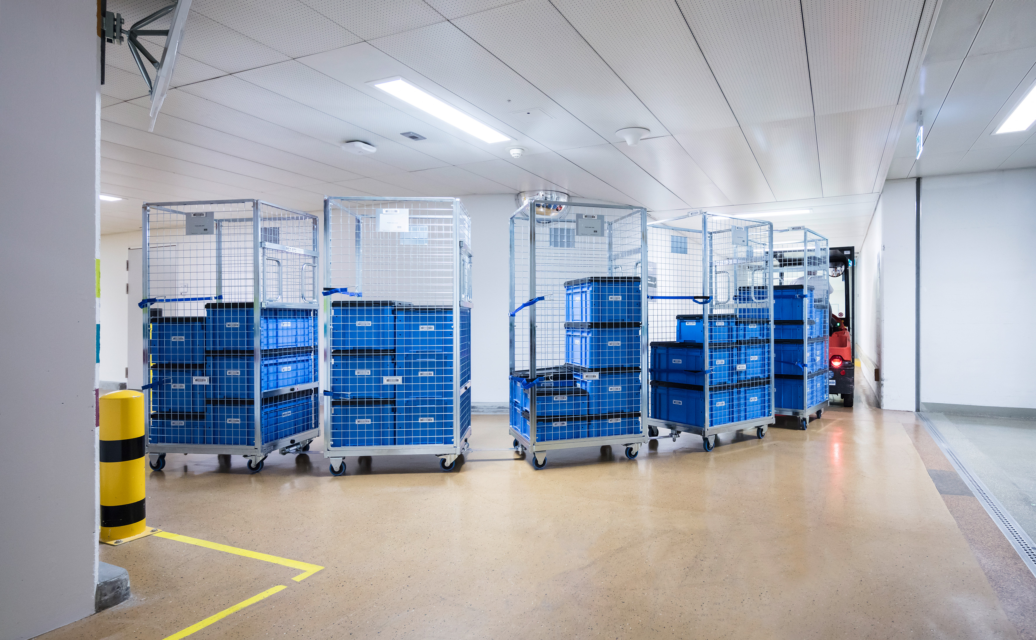 With 43 hospitals and institutes, over 980 beds, more than 500,000 outpatient visits and over 42,000 inpatients, the University Hospital Zurich is one of the largest clinical operations in Switzerland. Managing all of this effectively and for everyone’s benefit requires sophisticated intra-logistics for medical and non-medical consumables. The construction of the new UHZ Logistics and Service center in Schlieren, which supplies the UHZ center in Zurich as well as the external wards, made it necessary to put in place specially coordinated roll cages for distribution. The organization found Wanzl Logistics + Industry to be the ideal partner for this task.
