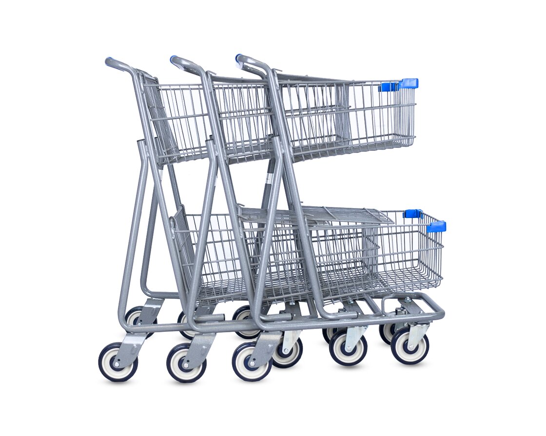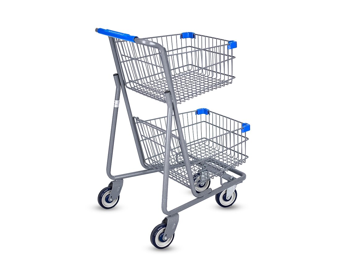 The 5141D Two-Basket Express Cart is designed as a compact cart tailored for the modern shopper seeking efficiency and ease during their grocery runs. With a dual-basket design and great maneuverability, it's the ideal solution for quick errands or smaller shopping trips.