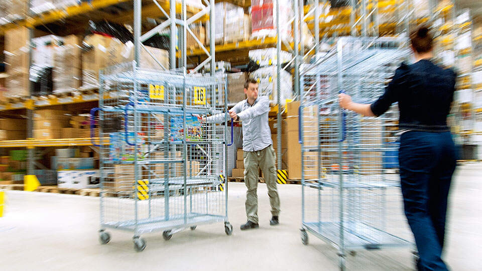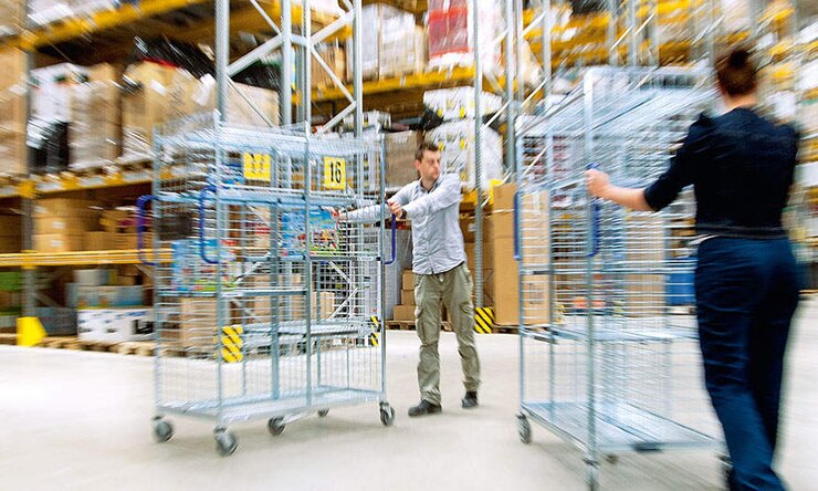 Los nuevos carros de Wanzl, diseñados según las necesidades de los productos de bol.com, contribuyen a la mejora del tiempo en los pedidos.