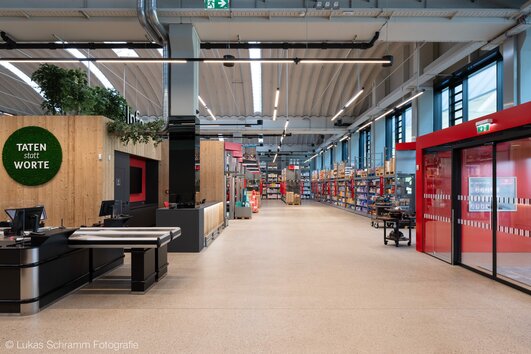 Para que todos los procesos del supermercado funcionen sin problemas, Wanzl creó también unas condiciones de trabajo óptimas para los empleados; desde la puesta a disposición de los carros de transporte más modernos hasta la preparación de los puestos de trabajo móviles y la configuración de las estanterías según las necesidades. «Al adaptar las estanterías del refrigerador de paso a las dimensiones de la puerta del refrigerador de pared, tuvimos en cuenta las condiciones del emplazamiento al detalle y, como en el emplazamiento de Salzburgo, diseñamos también una estantería de rodillos de paso aquí en Klagenfurt para que el personal pueda reponerla más rápidamente», afirma el director de proyecto de Wanzl. Además de la zona de ventas, Wanzl equipó el almacén de 4600 m² con estanterías para cargas pesadas y protección antichoque incluida.