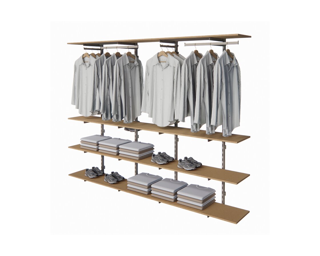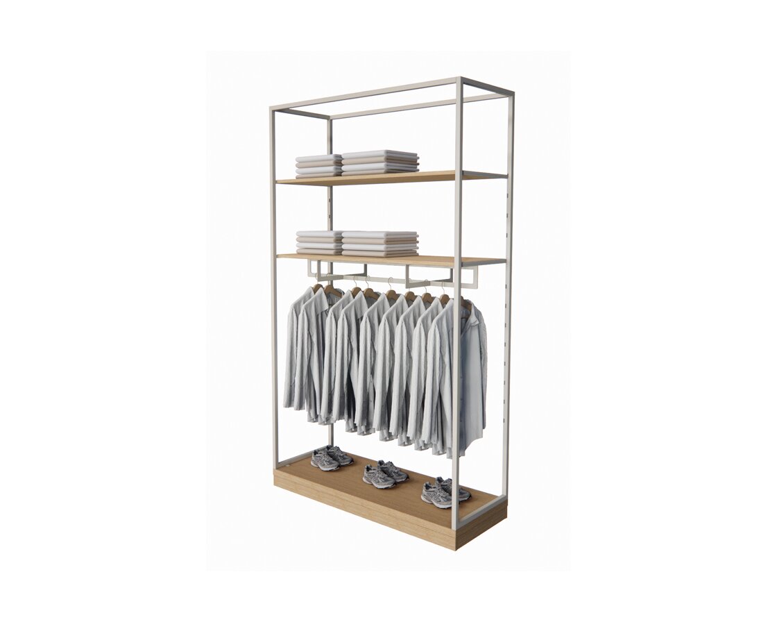 Modern-kalusteet vaateliikkeisiin on suunniteltu vaatteiden ja asusteiden tehokkaaseen ja tyylikkääseen esillepanoon kaikentyyppisissä vaateliikkeissä. Järjestelmässä on 30, 60 ja 90 cm:n moduuleita, joihin on saatavana erilaisia varusteita, kuten hyllyjä, tankoja sekä etu- ja sivuripustuksia, jotka mahdollistavat tuotteiden monipuolisen esillepanon. Seinäkalusteiden lisäksi valikoimassa on useita lattiamoduuleita, kuten vaatetelineitä, T-telineitä, myyntipöytiä ja esittelytelineitä.