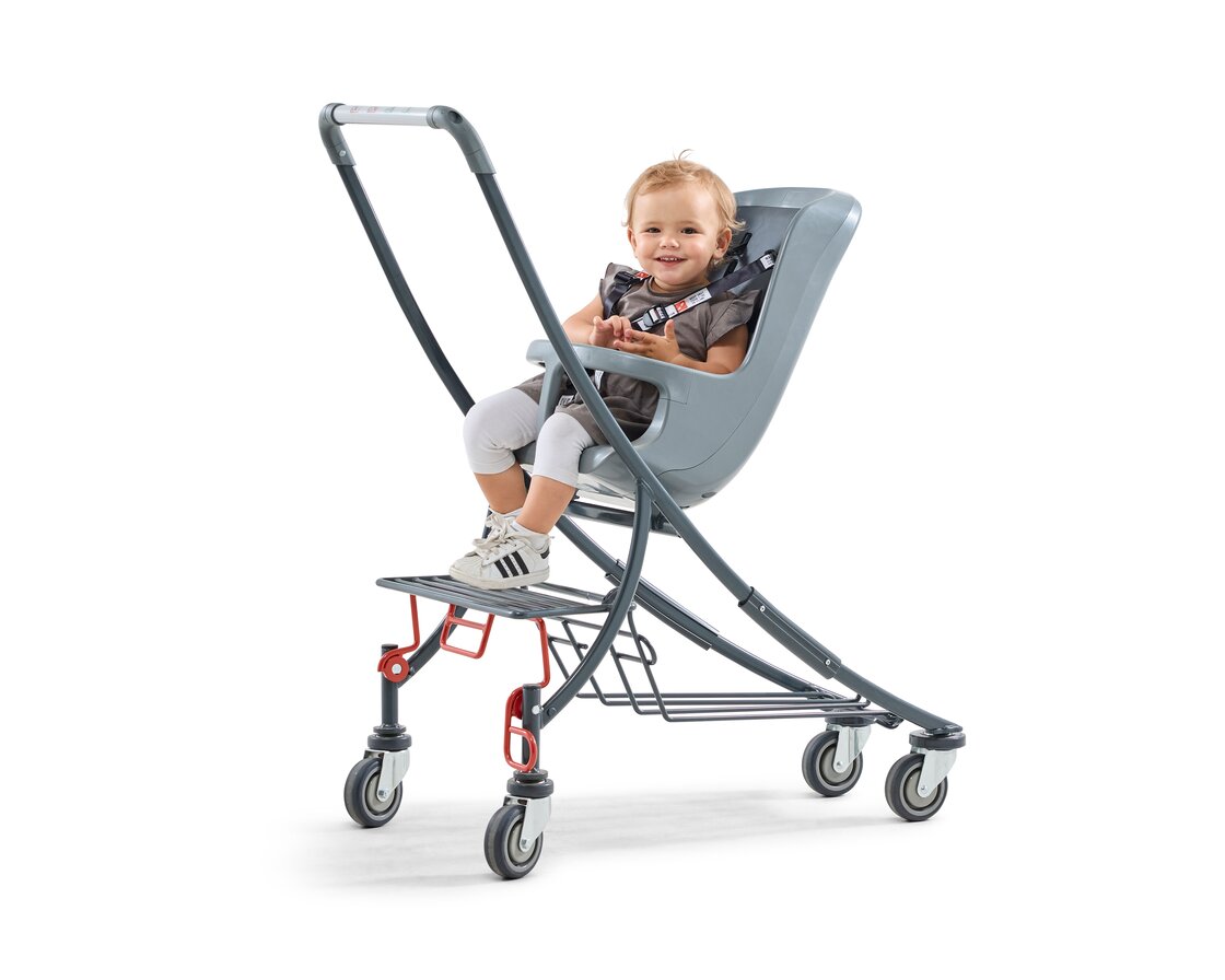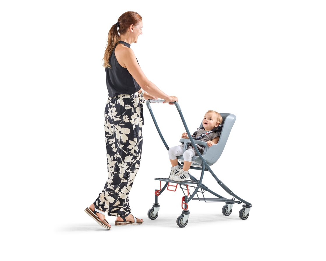Une poussette avec un certificat de sécurité NF EN 1888:2012.  Elle est particulièrement facile à manœuvrer et roule parfaitement sur différentes surfaces.  Elle soulage ainsi les parents pendant une séance shopping  prolongée dans un centre commercial ou bien encore lors des longues distances  à parcourir dans les aéroports.