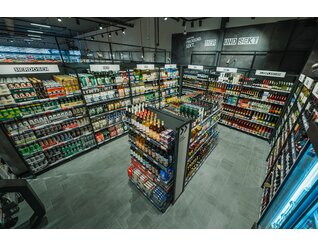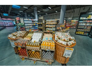 Les boissons fraîches, les produits laitiers y compris le fromage, le poisson et la viande, sont présentés de manière attrayante derrière les vitres de grands réfrigérateurs, avec une finition imitant l’acier. Ici, les clients trouvent tout ce dont ils ont besoin, y compris de nombreux produits régionaux. Dans le rayon vins et spiritueux, c’est le look industriel qui domine. Des rayonnages métalliques noirs avec finition en métal déployé à grosses mailles, présentent le large choix de boissons alcoolisées. En dehors des horaires d’ouverture normaux, les clients peuvent accéder à ce rayon après le contrôle de leur âge, uniquement par un portillon séparé, pour garantir la protection des mineurs. En fonction de l’heure, le client termine ses achats aux caisses traditionnelles ou aux terminaux de caisses libre-service qui sont indiqués par des pancartes et fléchés. Le chef de projet Johannes Aumann de Bünting résume : « Nous sommes très satisfaits d’avoir pu faire de notre vision une réalité avec Wanzl et nous espérons que ce nouveau Combi City sera également très bien accueilli par nos clients. »