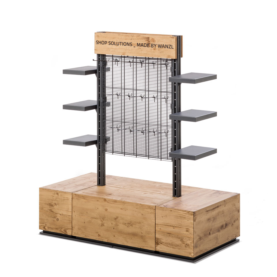 Das klassische Wanzl Material Draht verbindet sich mit dem innovativen Aluminium-Look zu einem exklusiven Auftritt.