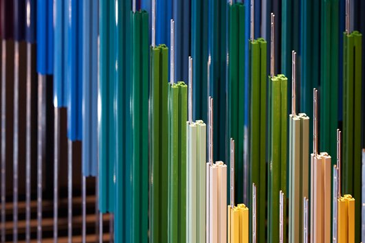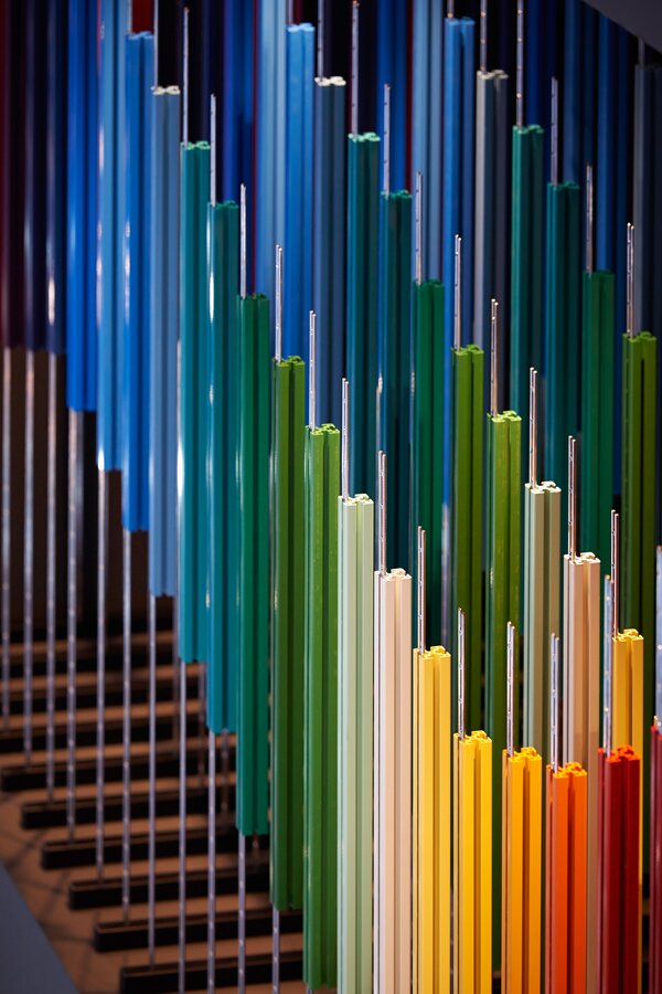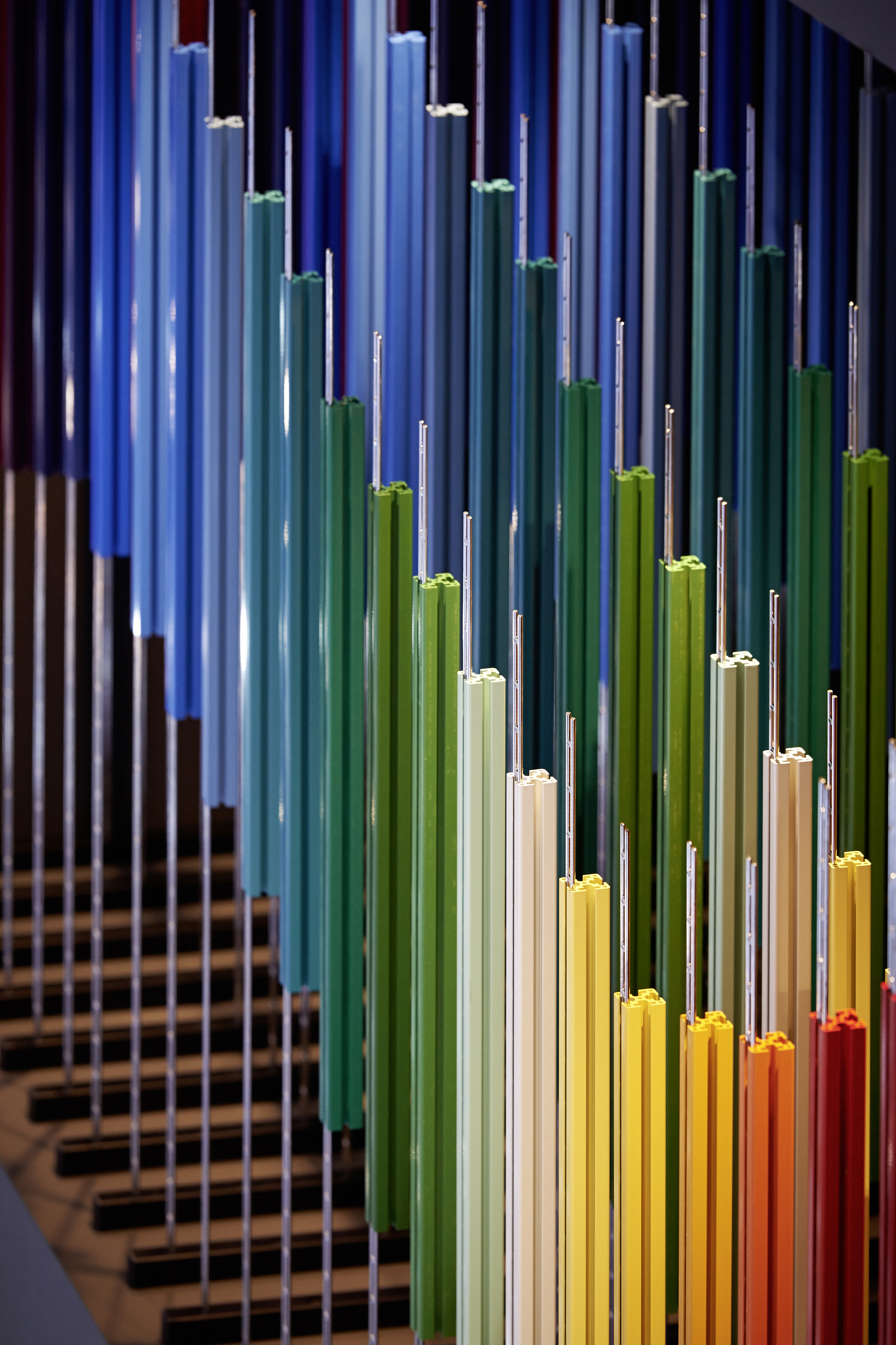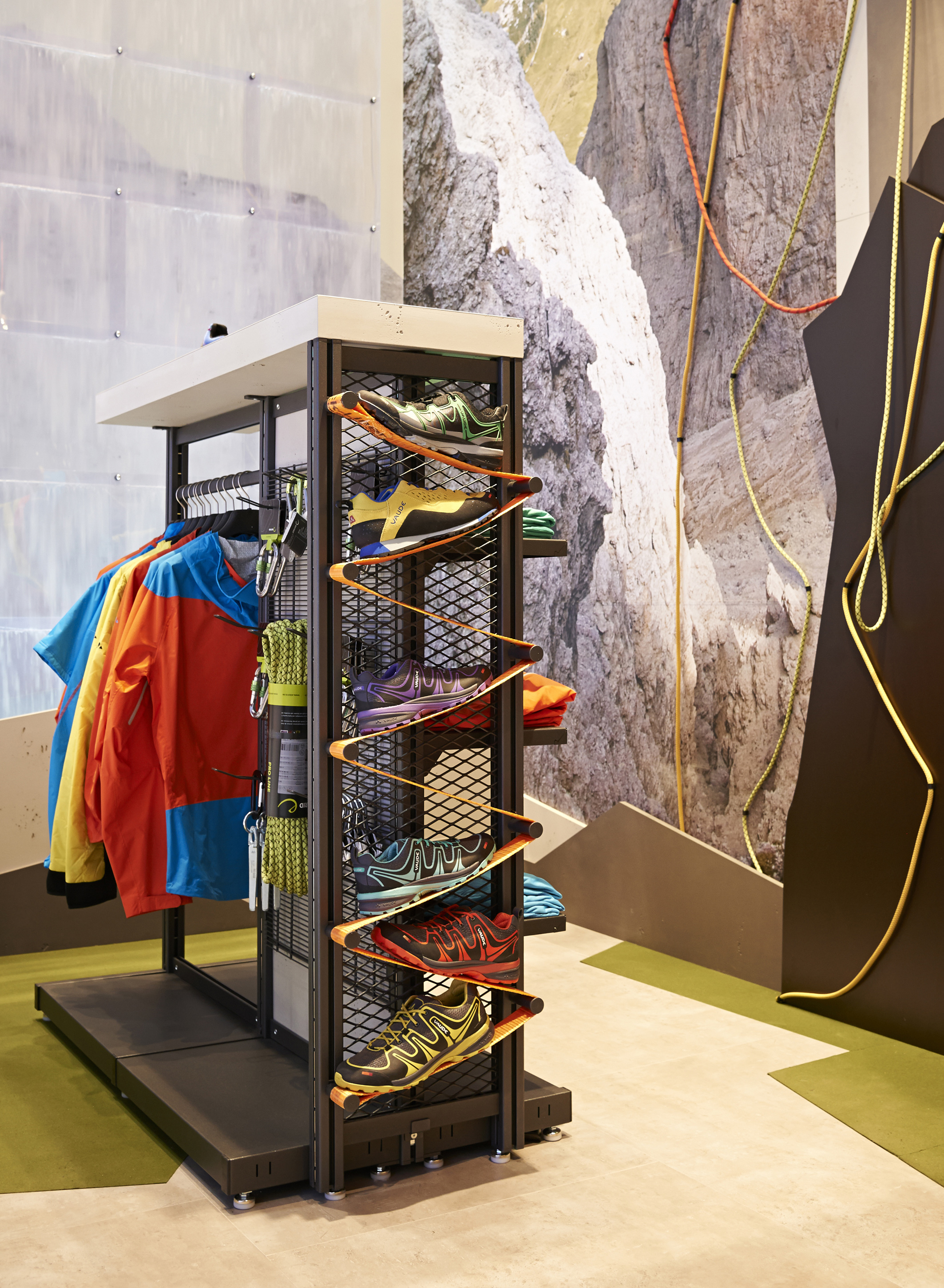 « duo tech est un système doté d’une échelle qui apporte de la couleur dans les magasins. C’est ce qui le rend unique. Étonnant aussi bien par son caractère fonctionnel que par sa forme, le système est composé d’un montant en aluminium dans lequel il est possible d’insérer, de chaque côté, une échelle en fil. Le montant peut être coloré selon les envies du client : aux couleurs de son identité graphique, en version multicolore ou avec des teintes sobres et élégantes. Il s’agit en effet d’un système de rayonnage parfaitement pensé, extrêmement flexible pour la vente au détail et mettant directement les produits en valeur. »