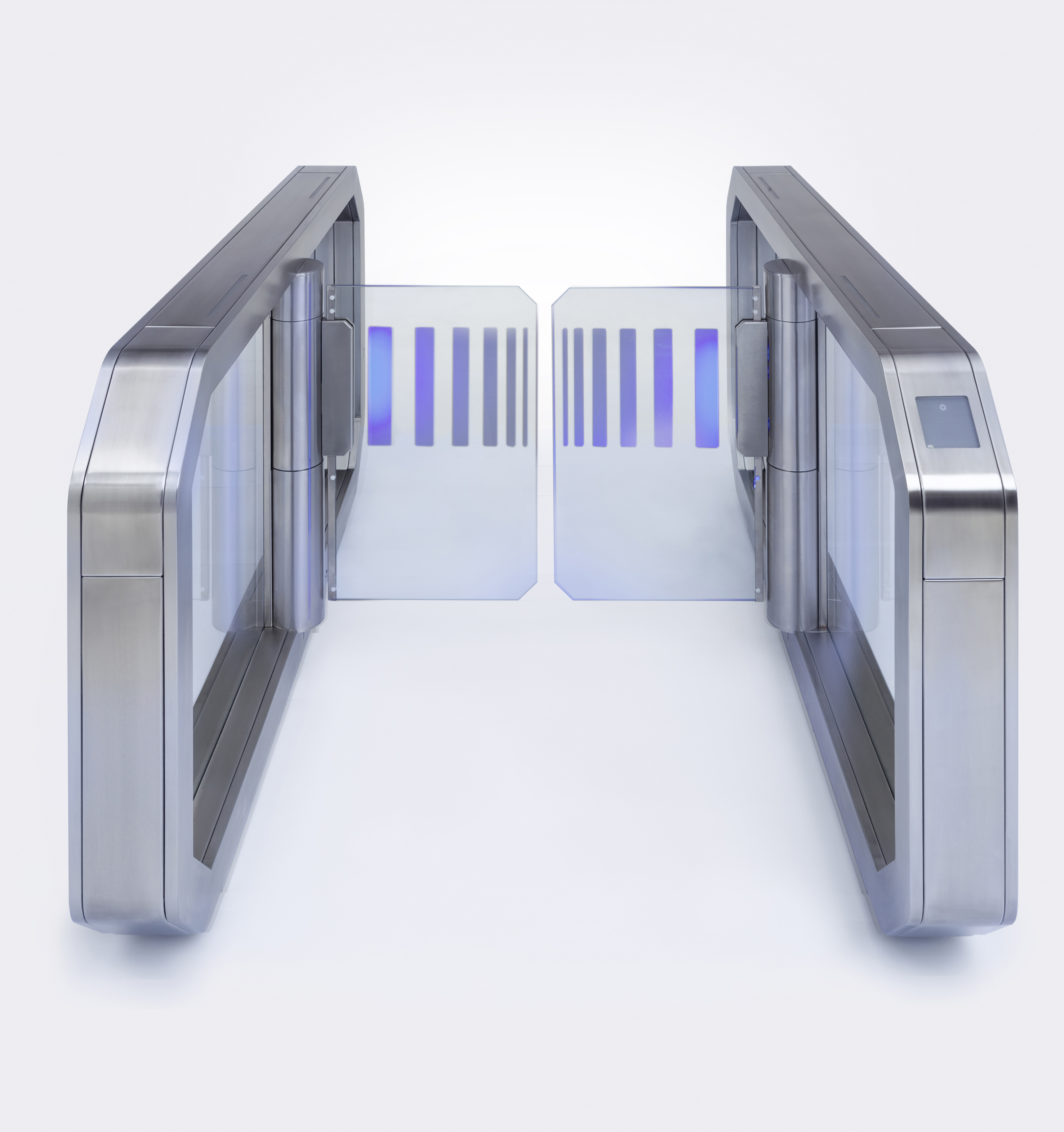 « La technologie ultramoderne qui commande le portillon de sécurité Galaxy Gate se retrouve jusque dans le design de grande qualité en inox et en verre. Grâce aux bras en verre trempé qui pivotent rapidement et aux capteurs sophistiqués, le Galaxy Gate permet un contrôle complet et fiable des personnes. Le portillon est doté d’une technologie de commande et de surveillance ultramoderne. Une rangée de LED permet de connaître, au premier coup d’œil, l’état du système. L’appareil est en outre équipé d’un système d’alarme intégré, d’une commande WEAC programmable avec serveur Web, d’une interface LAN et d’une annonce vocale personnalisée en qualité MP3. En somme, c’est un système bien pensé dont la technologie modulaire s’adapte à tous les cas de figure. »