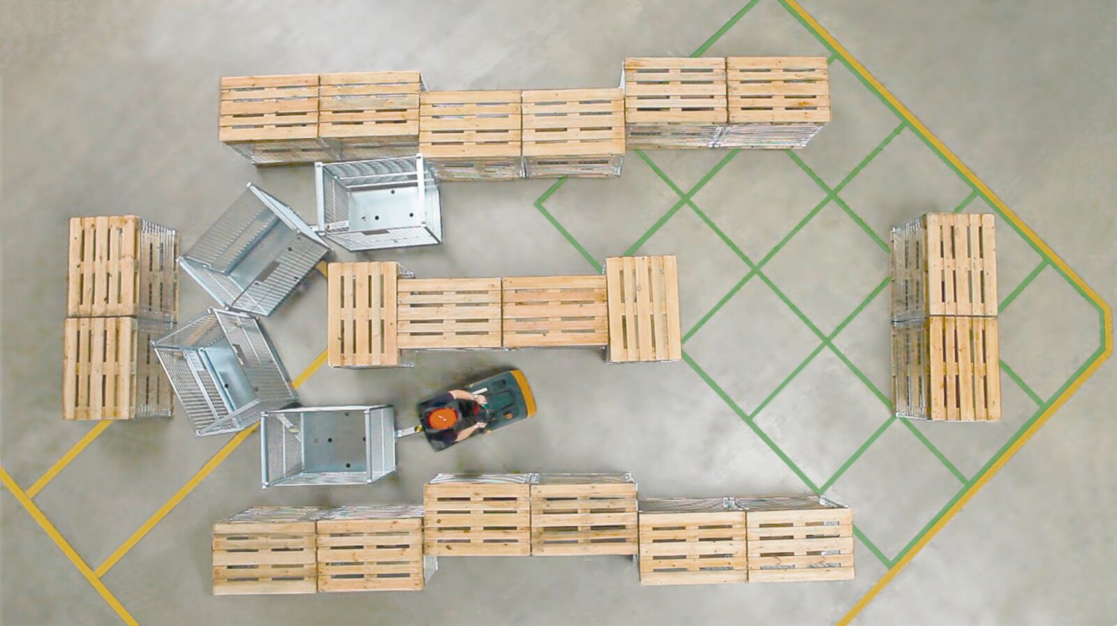 Dans le secteur de l’intralogistique, de plus en plus d’entreprises misent sur une meilleure utilisation de l’espace dans les unités de stockage et de production. Les allées deviennent plus étroites et les exigences quant au transport sûr des marchandises dans les trains intralogistiques augmentent. Les chariots qui ne suivent pas exactement les traces du véhicule tracteur augmentent les risques de chute dans les virages serrés. Face à la demande croissante, Wanzl a conçu un châssis spécial pour les trains intralogistiques. Dans l’industrie, les roulettes pour palette et les containers mobiles sont de plus en plus utilisés dans les trains intralogistiques. Parmi l’équipement spécial de Wanzl figurent dorénavant des chariots dotés d’un essieu directeur. Ceux-ci représentent une solution idéale pour les déplacements dans les passages étroits, car les deux essieux sont mobiles et peuvent être réglés radialement en formant un arc, d’où une très bonne stabilité directionnelle en aval.
