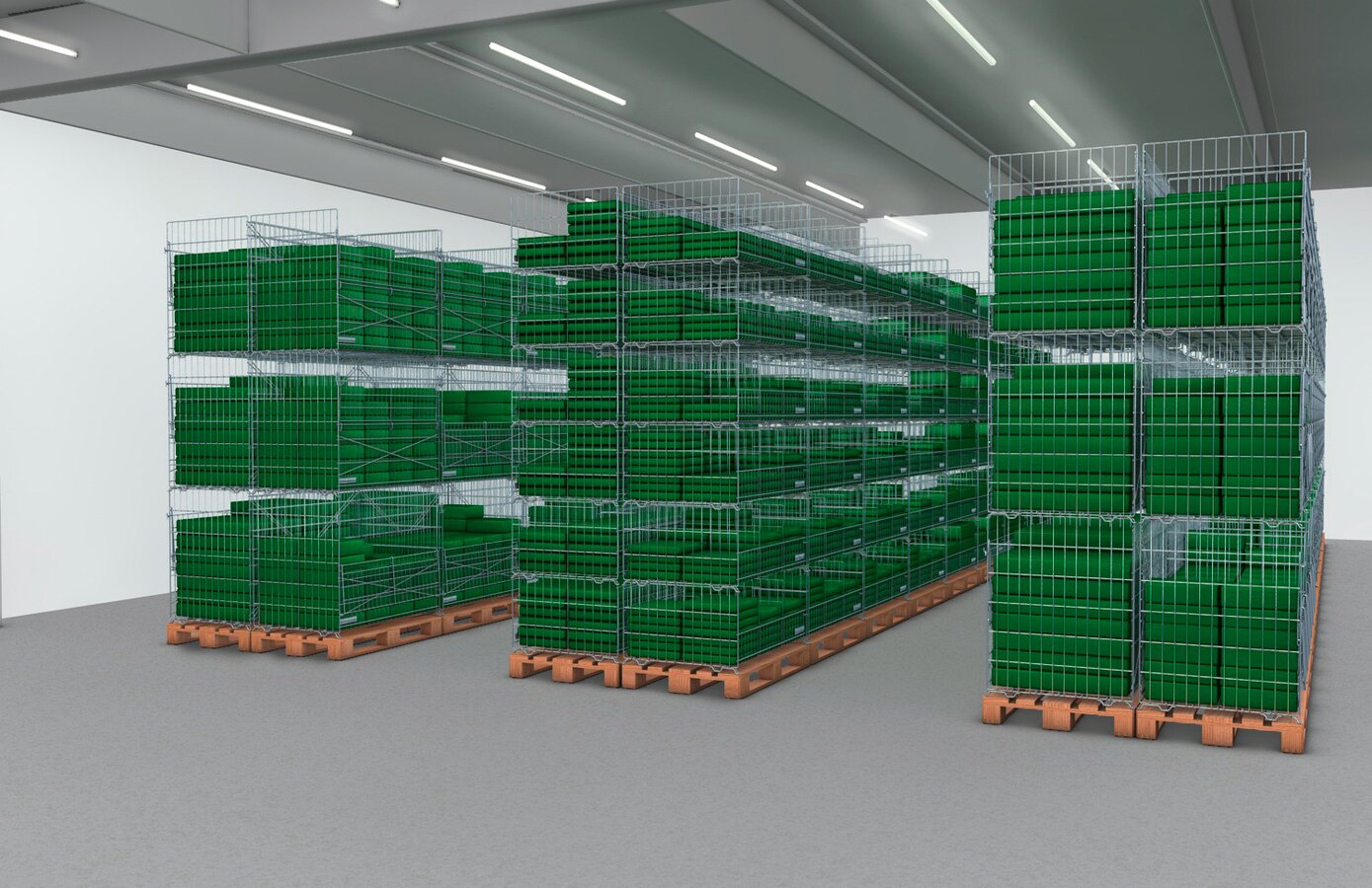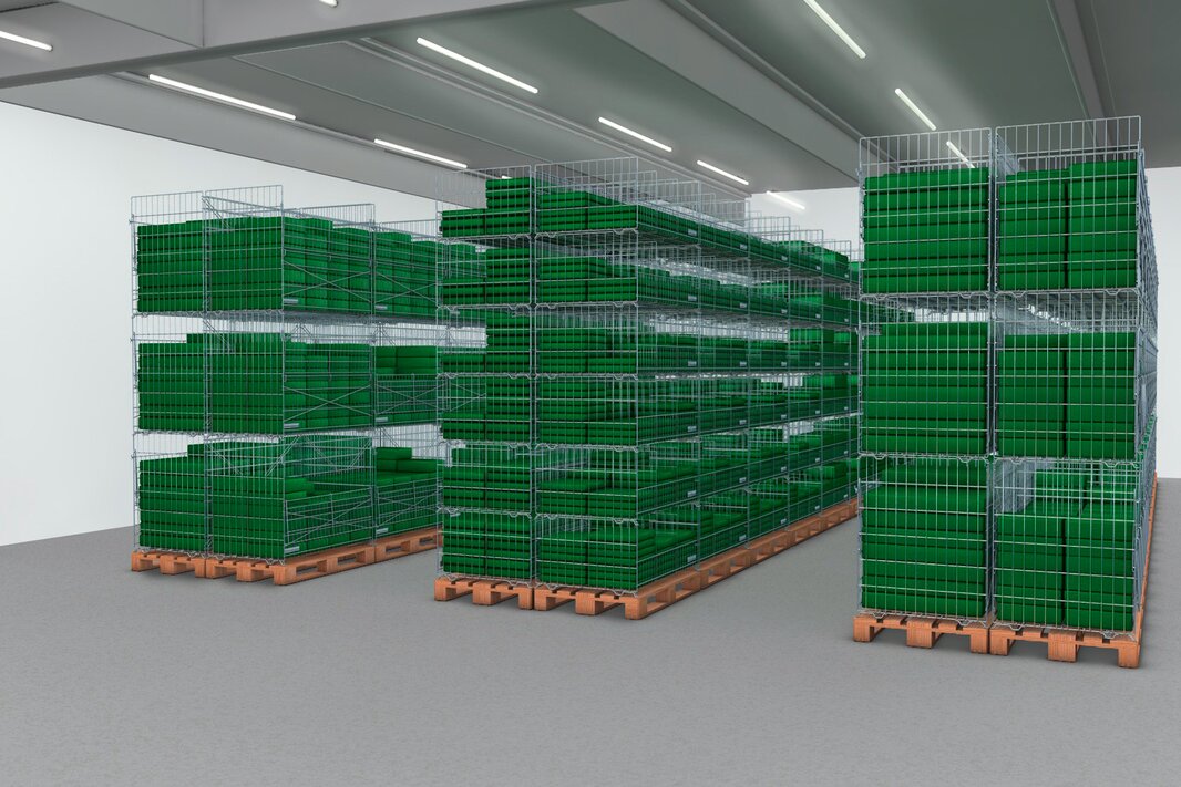 Une grille de séparation optionnelle permet de compartimenter les paniers. Les paniers de stockage peuvent être empilés sur palettes Europe ou sur des pieds de superposition optionnels, qui peuvent être utilisés comme support mais également comme fixation pour des paniers de stockage disposés les uns à côté des autres. La capacité de charge maximale des paniers de stockage est de 50 kg et de 100 kg pour le modèle haut. Ainsi, le système EasyStore est parfait pour le textile ou pour les gammes de produits légers renouvelées régulièrement.