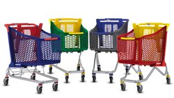 Un nouveau chariot libre-service en plastique composé d’au moins 50 % de matériaux recyclés