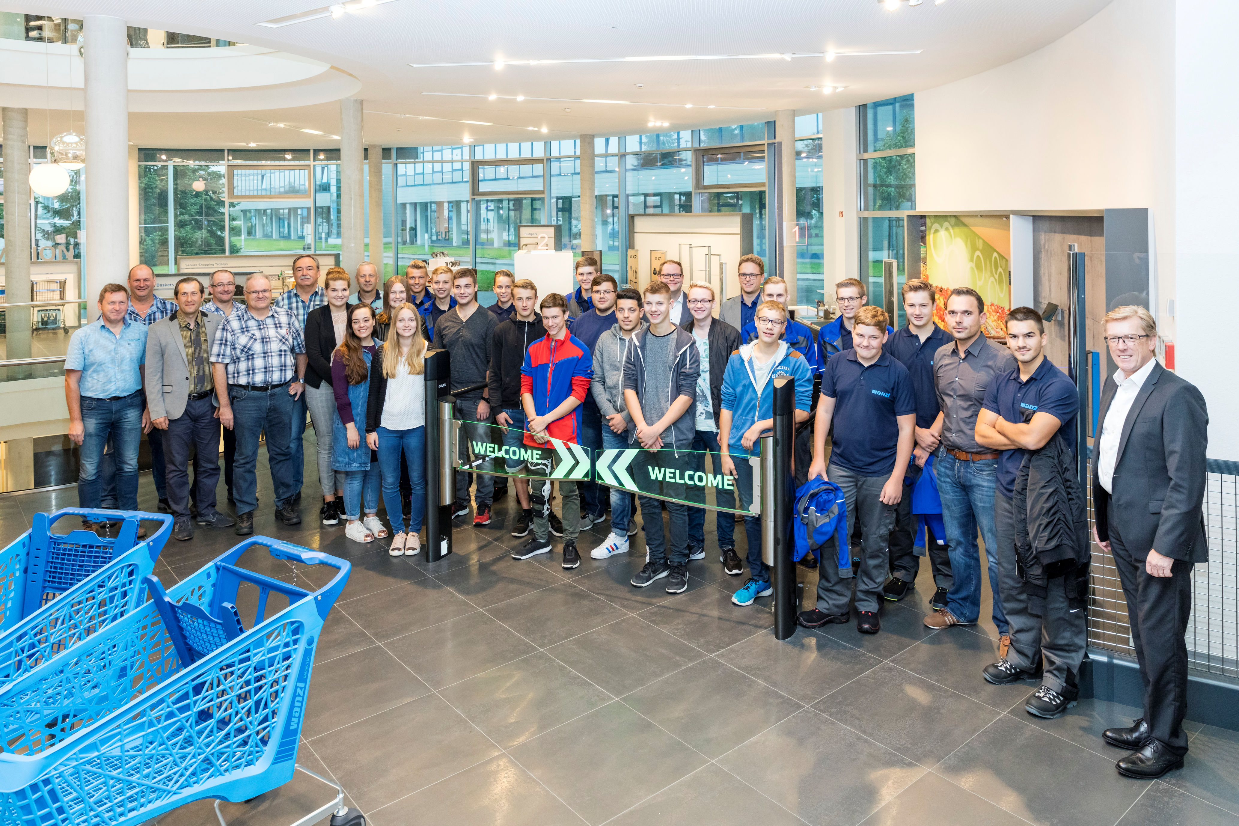 Au nom de la direction du groupe Wanzl et en présence des cadres, du personnel technique et de représentants du comité d’entreprise, Frank Derks (à droite sur la photo) a souhaité la bienvenue aux futures recrues des usines de Leipheim et de Kirchheim.