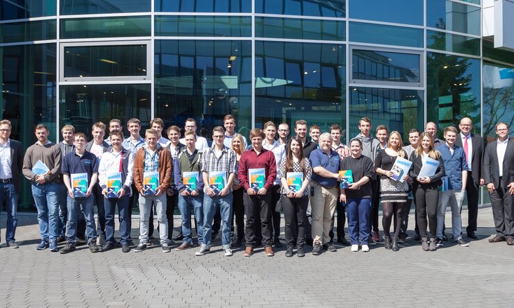 En présence des cadres et des membres du comité d’entreprise, Dr. Klaus Meier-Kortwig et Frank Derks, ainsi que les formateurs ont procédé à la remise des diplômes, mentions d’excellence et cadeaux à treize mécaniciens industriels (Marco Bannert, Ludwig Brunner, Daniel Copelicke, Jonas Lecheler, Michael Mayer, Christoph Mayr, Stefan Riggenmann, Kevin Schmidt, Stefan Schroweg, Markus Spengler, Patrick Steck, Jonas Urbanski und Maximilian Walz), six mécaniciens de précision (Andreas Guggenmos, Markus Höpfl, Lucas Nägele, Andreas Rampp, Theresa Unglert und Klaus Wilhelm), quatre technico-commerciaux (Matthias Fünfer, Laura Guggenmos, Dennis Kiss und Katja Wuchenauer), quatre électrotechniciens en génie industriel (Mathias Dietmayer, Dominik Mackiewitz, Thomas Schlögel und Alexander Zech), deux spécialistes du revêtement de surface (Daniel Haller et Tamisha Wagner) et une diplômée en informatique de gestion à l’école supérieure de formation en alternance du Bade-Wurtemberg (Kristina Helfer).