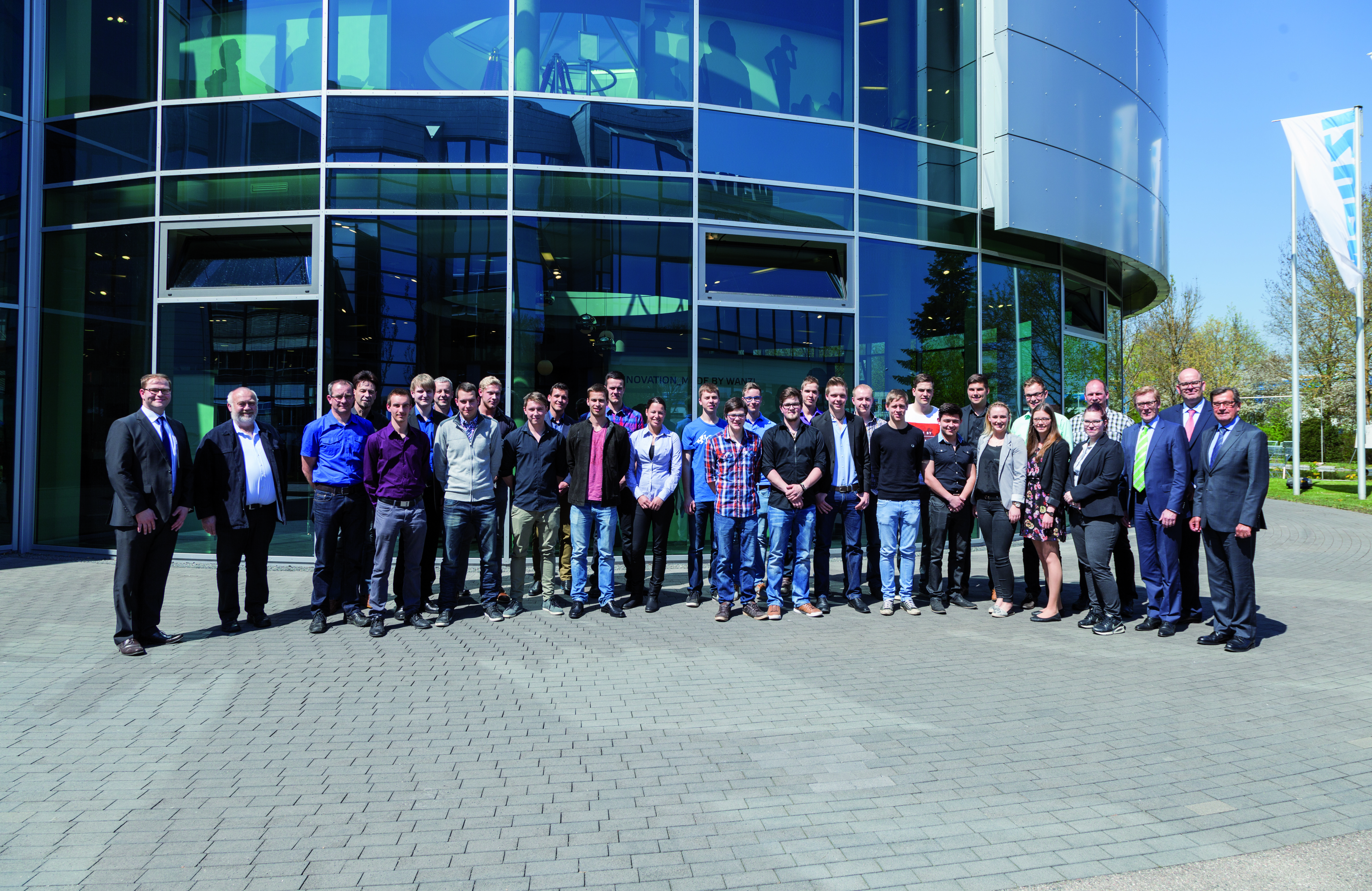 En présence des cadres et des membres du comité d’entreprise, Dr. Klaus-Meier-Kortwig Gottfried Wanzl et les formateurs ont procédé à la remise des diplômes, mentions d’excellence et cadeaux à douze mécanicien(nes) industriel(les) (Maximilian Abold, Florian Affeld, Christian Bläßing, Marco Dolze, Maike Herkommer, Philipp Kober, Florian Meißle, Ferdinand Munk, Pascal Pauler, Maximilian Rueß, Florian Schiller und Armin Schmid), six mécanicien(nes) de précision (Tobias Dampf, Markus Hölzle, Johannes Mayer, Florian Springmann, Kilian Streicher und Johannes Wohnlich), cinq technico-commerciaux (Bianca Christ, Moritz Hofmann, Julian Mendle, Tamara Rabus und Daniela Volk), deux électroniciens en génie industriel (Daniel Drexler et Marvin Gräß), un informaticien spécialisé en intégration de systèmes (Nikolaus Streich) et une lauréate du diplôme universitaire en alternance obtenu à l’école supérieure de gestion et management de Günzburg, la Hochschule für angewandtes Management (HaM) (Simone Stohr).