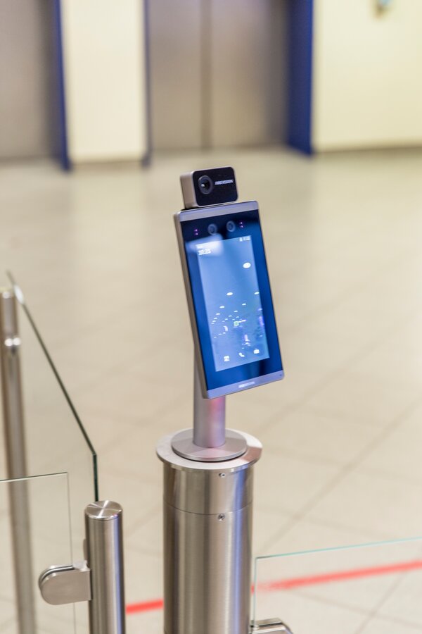 Avec le Galaxyport Protect, la clinique de Herford est maintenant parfaitement parée pour passer l’hiver en cette période de coronavirus. Outre le contrôle, la consignation des données fait également partie de la gestion des visiteurs. Chacun d’eux doit avant d’entrer remplir un questionnaire pour un traçage rapide des chaînes d’infection en cas de crise. Une fois que le visiteur a remis le questionnaire à l’agent d’accueil, il passe par l’installation de contrôle des accès et obtient ou non l’autorisation d’entrer. Seuls les employés bénéficient d’un accès séparé au bâtiment. Pour Marco Kauling, la raison en est simple : « Nous savons que nous pouvons faire confiance à nos employés pour respecter d’eux-mêmes les règles et pour contrôler leur état de santé. Ils ont été formés et sensibilisés à ce sujet. Il n’est pas donc pas nécessaire de les soumettre à un contrôle quotidien avec le Galaxyport Protect. Le contrôle des accès est prévu uniquement pour les visiteurs externes. »