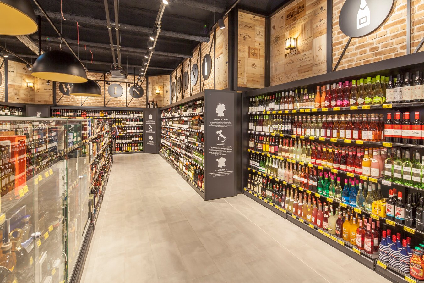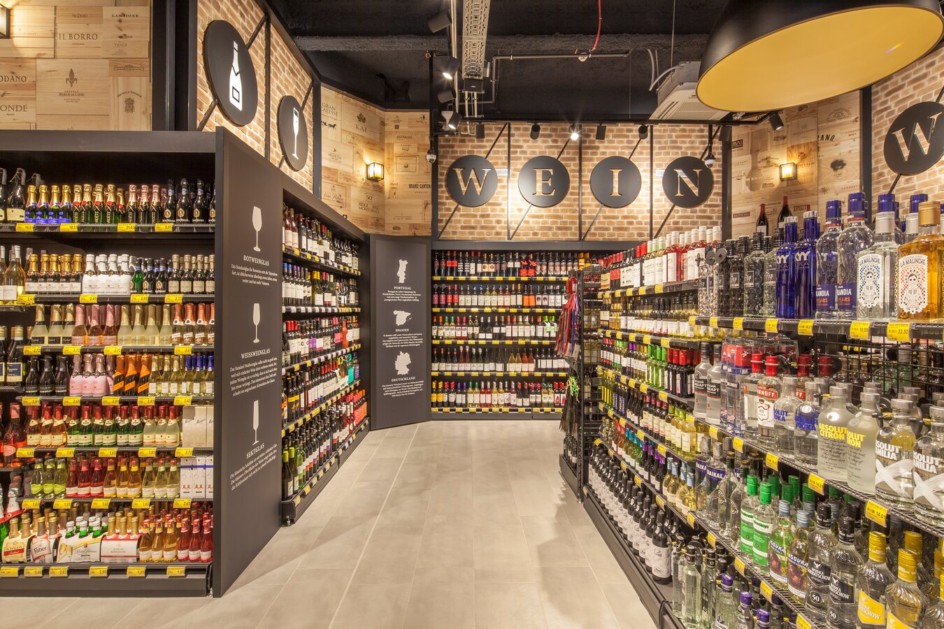 Le concept du magasin se caractérise en très grande partie par un contraste de couleurs claires et foncées. Les plafonds et les systèmes de présentation des marchandises tels que vitable et wire tech arborant des couleurs foncées créent une impression générale d’élégance, notamment grâce à leur combinaison avec les sols et les murs aux teintes claires. Des couleurs terre judicieusement choisies, des éléments en bois chauds et des briques au style rustique viennent parfaire çà et là le concept. Il en résulte une combinaison harmonieuse de matériaux sobres, de teintes naturelles et d’éléments de style industriel. Les lampes décoratives suspendues au plafond ou accrochées au mur au style à la fois moderne et industriel contribuent aussi à cette atmosphère, et soulignent la volonté de proposer un aménagement de qualité supérieure, moderne et agréable. Une ambiance dans laquelle la clientèle hétérogène passe un bon moment. Le grand nombre de touristes et de voyageurs d’affaires tout comme le caractère multiculturel de Hambourg ont été également pris en compte. Tous les textes et la signalétique sont proposés en allemand et en anglais. De plus, de très grandes images de produits sur un fond clair assurent une communication efficace. La fraîcheur des marchandises notamment est ainsi parfaitement mise en scène et évidente pour tous.