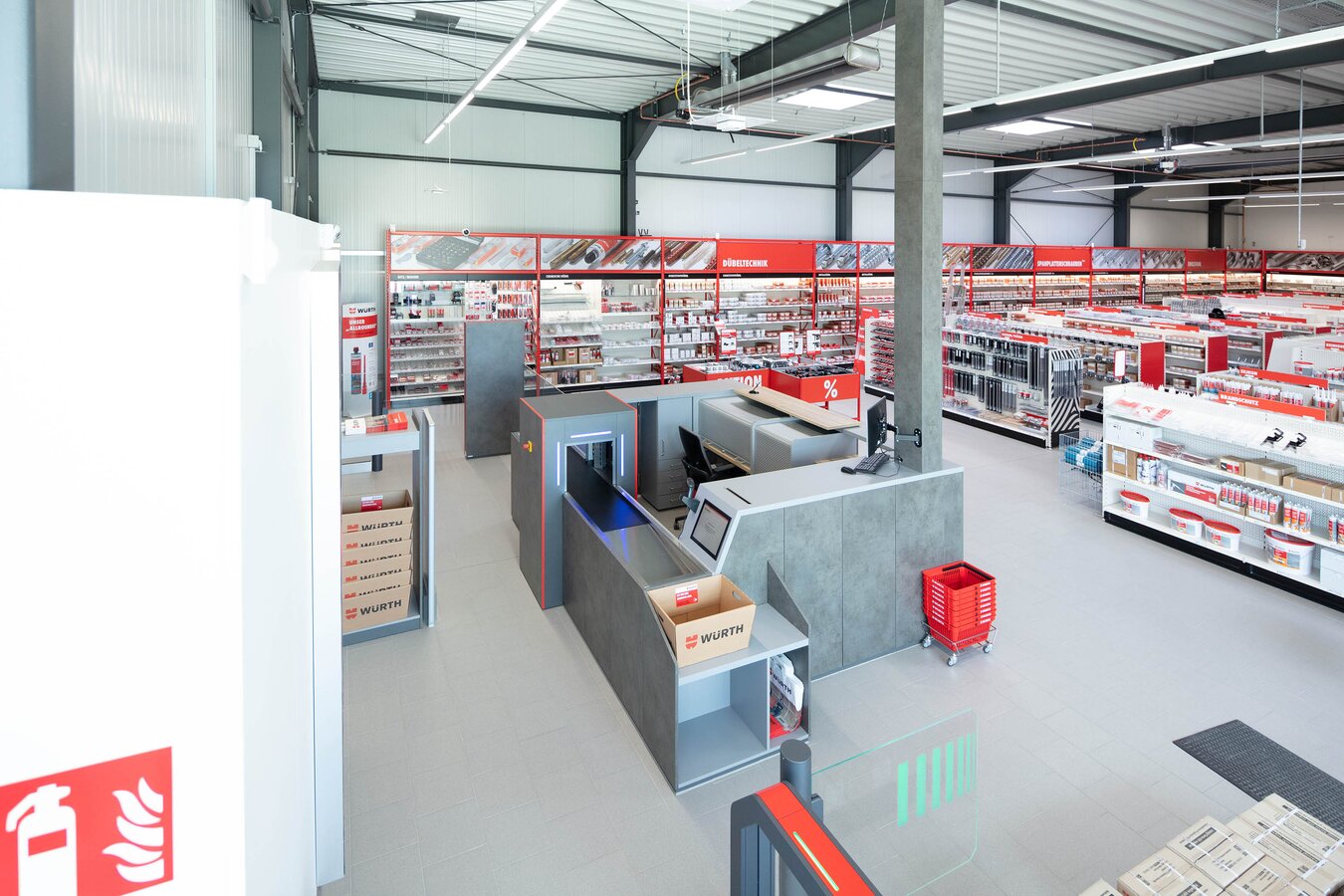 En élaborant un concept innovant pour la filiale de Würth à Vöhringen, Wanzl prouve sa grande expertise en la matière. Bien avant de pénétrer dans le magasin, une grande pancarte rouge apposée sur la façade et arborant le chiffre « 24 » annonce aux clients que quelque chose de particulier les attend à l’intérieur : Würth 24, un magasin hybride alliant commerce stationnaire et commerce en ligne, est un projet technologique pionnier. Les clients peuvent y faire leurs achats 6 jours sur 7 et 24 heures sur 24.