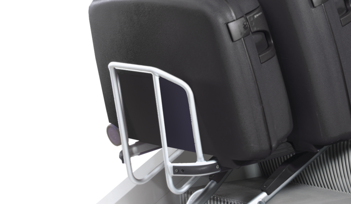 Transport sûr des bagages sur l’escalier roulant sur une surface de chargement quasiment horizontale.