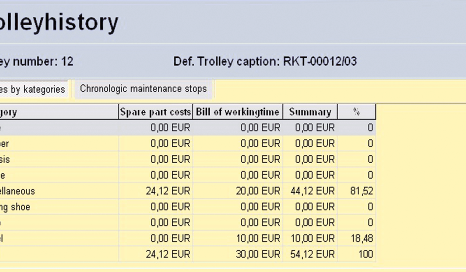 • Contrôle des coûts/vue d’ensemble des opérations de maintenance réalisées