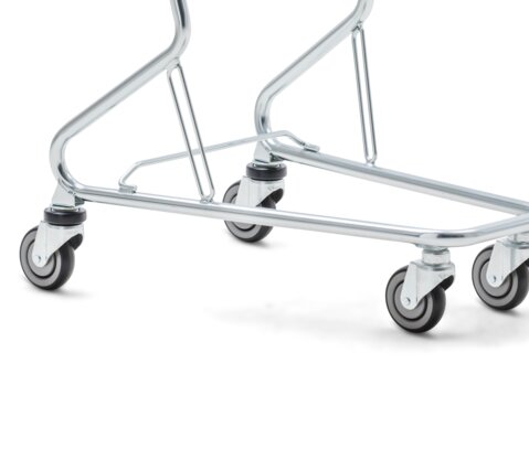 Châssis en tube rond robuste et fil d’acier. Panier à mailles serrées en fil d’acier, avec poignée en tube rond et embouts protecteurs de poignée en plastique. City-Shopper 2 CS 60 de série avec siège enfant et assise robuste en plastique. Réduction importante du bruit pour un déplacement silencieux.