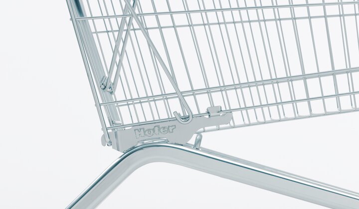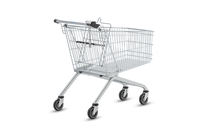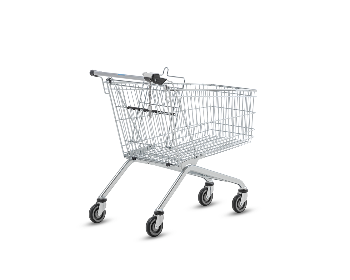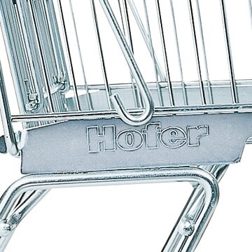 Châssis en tube plat ovale robuste. Panier à mailles serrées en fil d’acier, avec siège enfant, poignée en tube rond et embouts protecteurs de poignée en plastique. Siège enfant avec assise en plastique robuste. Réduction du bruit des parties mobiles.