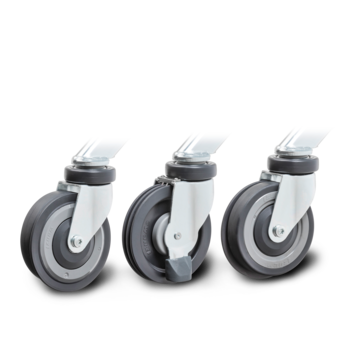 • Roues d’origine Wanzl, résistantes à l’abrasion, sans entretien, diamètre de 100 ou 125 mm