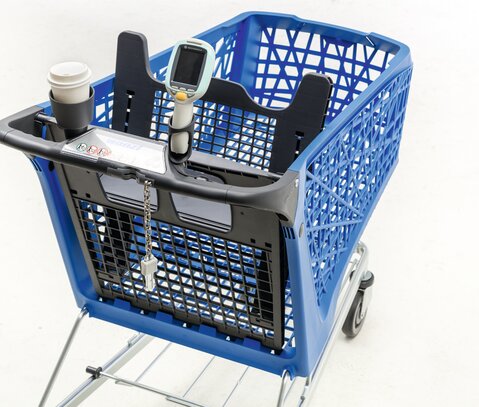 Les larges surfaces de personnalisation à l’avant du panier et sur les côtés du chariot libre-service vous offrent la possibilité d’y apposer votre logo.